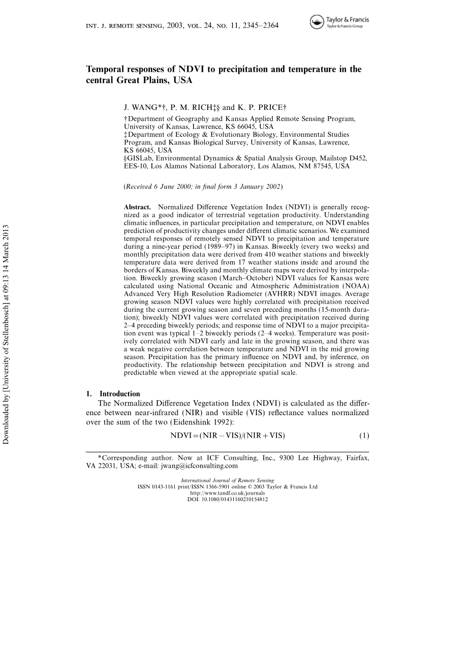 J. WANG, P. M. RICH and K. P. PRICEdagger;