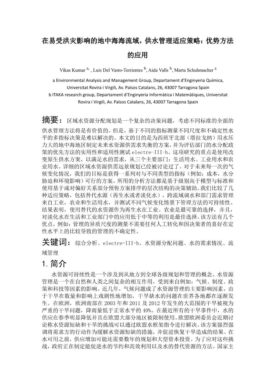 湖北省用水结构变化的时空特征分析外文翻译资料