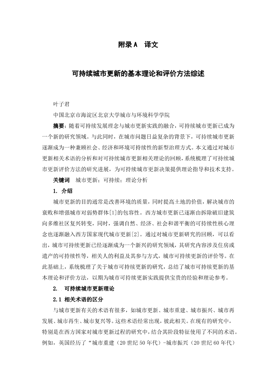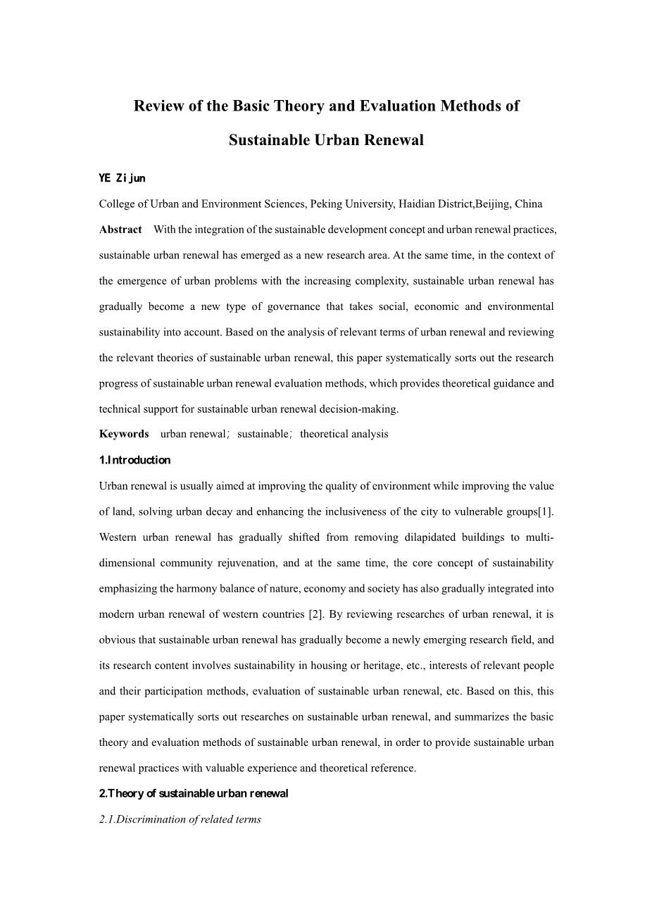 可持续城市更新的基本理论和评价方法综述外文翻译资料 2023-03-01 11:06:30 英语原文共 10 页,剩余内容已隐藏,支付完成后下载完整资料 英语译文共 18 页,剩余内容已隐藏,支付完成后下载完整资料 资料编号:[405656],资料为PDF文档或Word文档,PDF文档可免费转换为Word 您需要先支付 30元 才能查看全部内容!立即支付 发小红书推广免费获取该资料资格。点击链接进入获取推广文案即可: Ai一键组稿 | 降AI率 | 降重复率 | 论文一键排版 PREVIOUS NEXT 您可能感兴趣的文章 基于生态经济分析的无锡市空间功能区划外文翻译资料 基于卫星数据和GIS技术的城市通风评价研究与应用-以北京市怀柔区雁栖湖生态城为例外文翻译资料 我国城市交通问题分析与道路建设规划管理研究外文翻译资料 第一线的可持续性转型,锁定本地规划领域并进行更改外文翻译资料 优化空间规划,以实现城市可持续发展的长期目标外文翻译资料 旅游规划与国家愿景:旅游回顾——斯里兰卡的政策外文翻译资料 生态文明建设是发展低碳经济的根本途径外文翻译资料 中国北京市社区养老护理资源的空间可达性分析外文翻译资料 在北京,中国住宅护理资源的空间访问外文翻译资料 联邦国家实体自治条件不断增强的服务业发展战略外文翻译资料