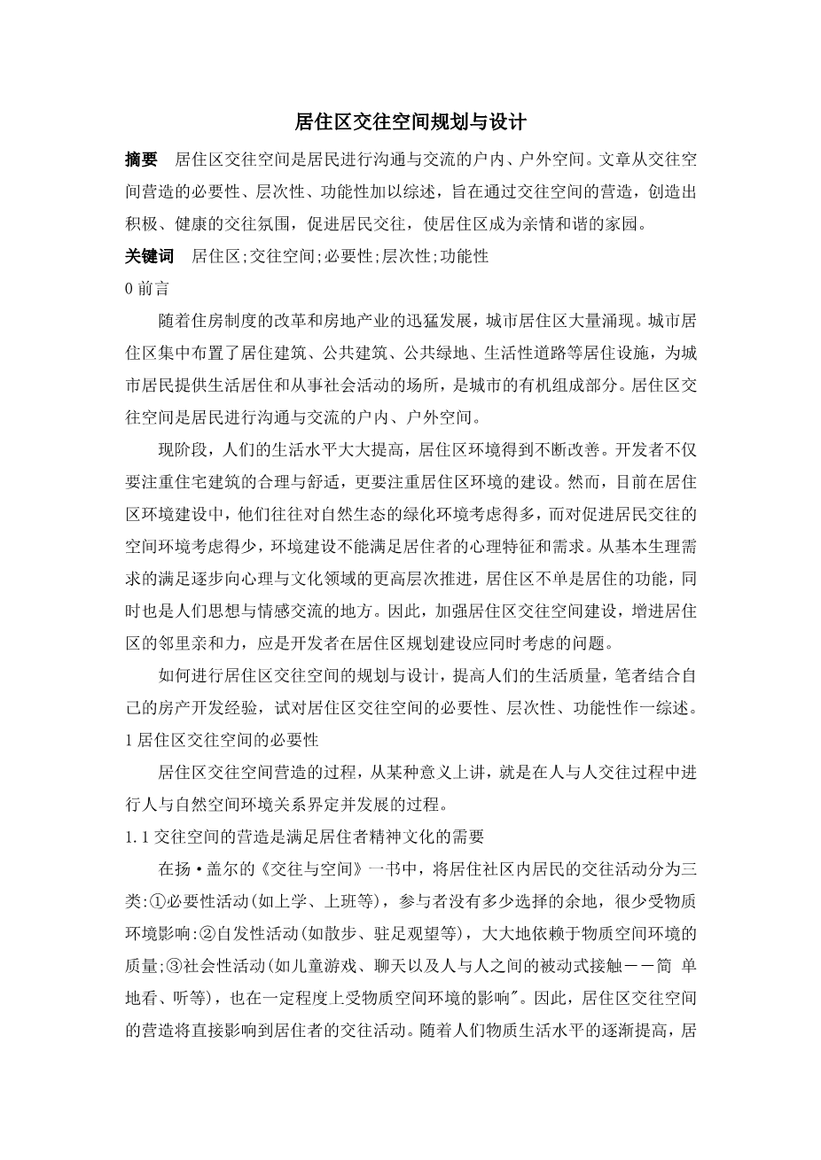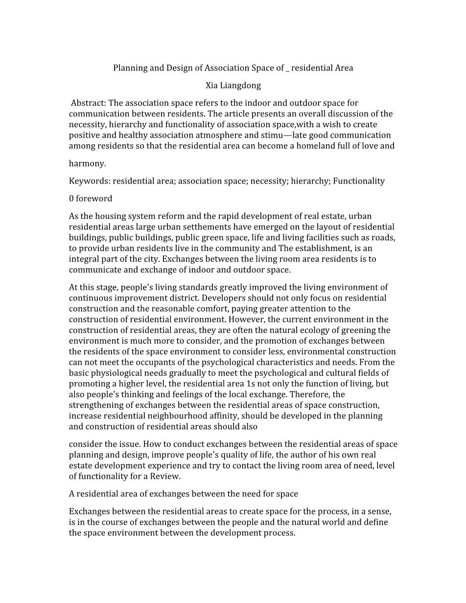 居住区交往空间规划与设计外文翻译资料 2023-03-01 11:06:49 英语原文共 7 页,剩余内容已隐藏,支付完成后下载完整资料 英语译文共 6 页,剩余内容已隐藏,支付完成后下载完整资料 资料编号:[405655],资料为PDF文档或Word文档,PDF文档可免费转换为Word 您需要先支付 30元 才能查看全部内容!立即支付 发小红书推广免费获取该资料资格。点击链接进入获取推广文案即可: Ai一键组稿 | 降AI率 | 降重复率 | 论文一键排版 PREVIOUS NEXT 您可能感兴趣的文章 基于生态经济分析的无锡市空间功能区划外文翻译资料 基于卫星数据和GIS技术的城市通风评价研究与应用-以北京市怀柔区雁栖湖生态城为例外文翻译资料 我国城市交通问题分析与道路建设规划管理研究外文翻译资料 第一线的可持续性转型,锁定本地规划领域并进行更改外文翻译资料 优化空间规划,以实现城市可持续发展的长期目标外文翻译资料 旅游规划与国家愿景:旅游回顾——斯里兰卡的政策外文翻译资料 生态文明建设是发展低碳经济的根本途径外文翻译资料 中国北京市社区养老护理资源的空间可达性分析外文翻译资料 在北京,中国住宅护理资源的空间访问外文翻译资料 联邦国家实体自治条件不断增强的服务业发展战略外文翻译资料