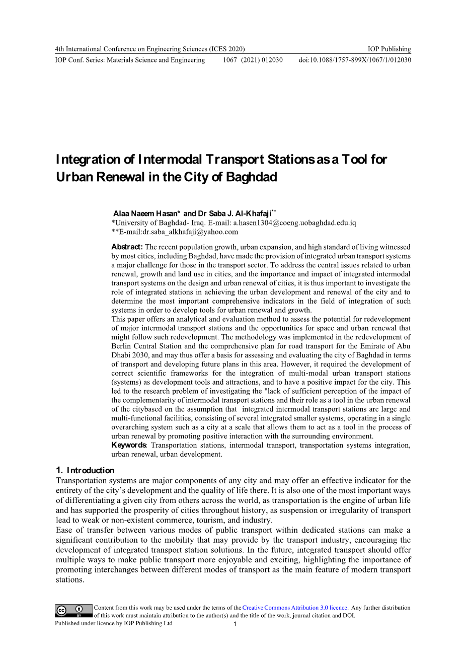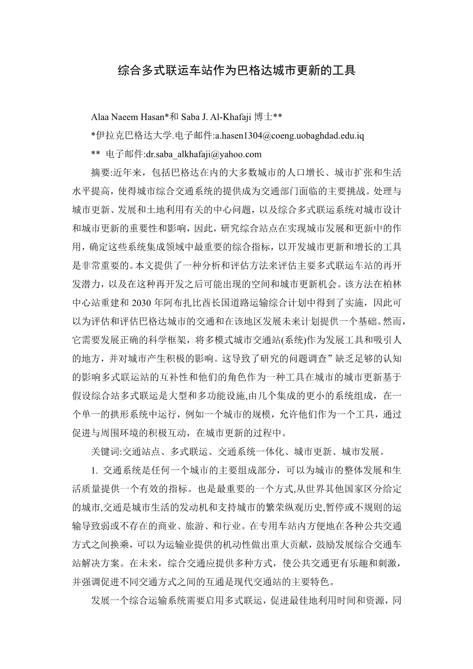 综合多式联运车站作为巴格达城市更新的工具外文翻译资料