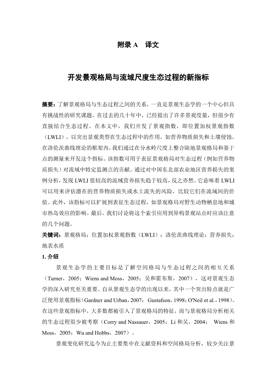 开发景观格局与流域尺度生态过程的新指标外文翻译资料 2023-05-31 19:40:09 英语原文共 9 页,剩余内容已隐藏,支付完成后下载完整资料 英语译文共 7 页,剩余内容已隐藏,支付完成后下载完整资料 资料编号:[612411],资料为PDF文档或Word文档,PDF文档可免费转换为Word 您需要先支付 30元 才能查看全部内容!立即支付 发小红书推广免费获取该资料资格。点击链接进入获取推广文案即可: Ai一键组稿 | 降AI率 | 降重复率 | 论文一键排版 PREVIOUS NEXT 您可能感兴趣的文章 基于生态经济分析的无锡市空间功能区划外文翻译资料 基于卫星数据和GIS技术的城市通风评价研究与应用-以北京市怀柔区雁栖湖生态城为例外文翻译资料 我国城市交通问题分析与道路建设规划管理研究外文翻译资料 第一线的可持续性转型,锁定本地规划领域并进行更改外文翻译资料 优化空间规划,以实现城市可持续发展的长期目标外文翻译资料 旅游规划与国家愿景:旅游回顾——斯里兰卡的政策外文翻译资料 生态文明建设是发展低碳经济的根本途径外文翻译资料 中国北京市社区养老护理资源的空间可达性分析外文翻译资料 在北京,中国住宅护理资源的空间访问外文翻译资料 联邦国家实体自治条件不断增强的服务业发展战略外文翻译资料