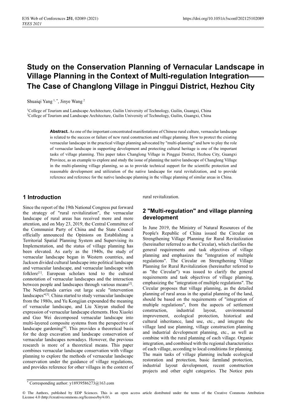 多规合一背景下乡土景观保护规划的研究——以贺州市平桂区长龙村为例外文翻译资料