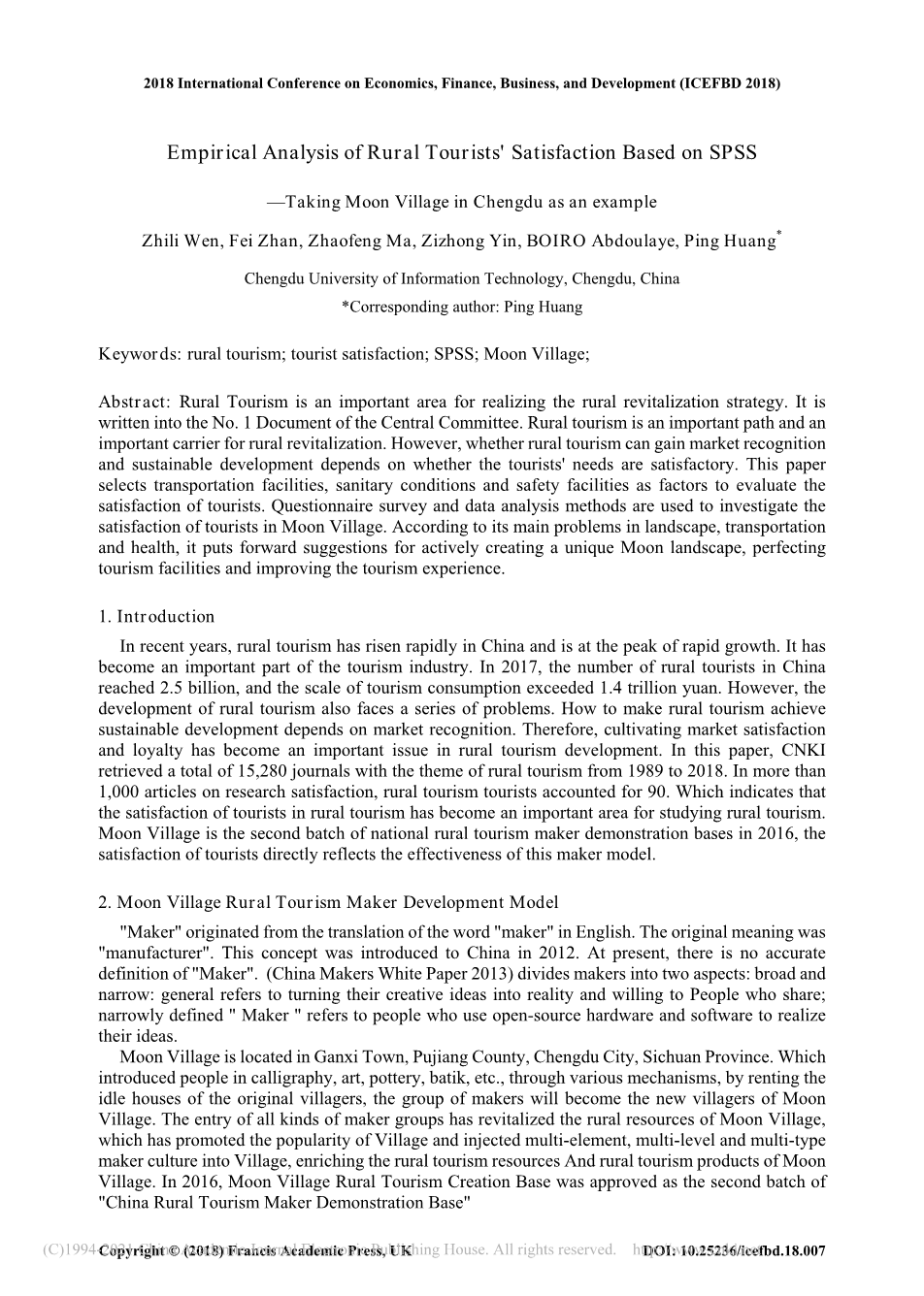 [4]Deng Qilin, Qi Jiang. Research on Rural Tourism Development Model Based on Cultural and Creative Projects——Taking oon Village, Ganxi Town, Pujiang, Chengdu as an Example [J]. Green Science and Technology, 2016(13): 239-241.