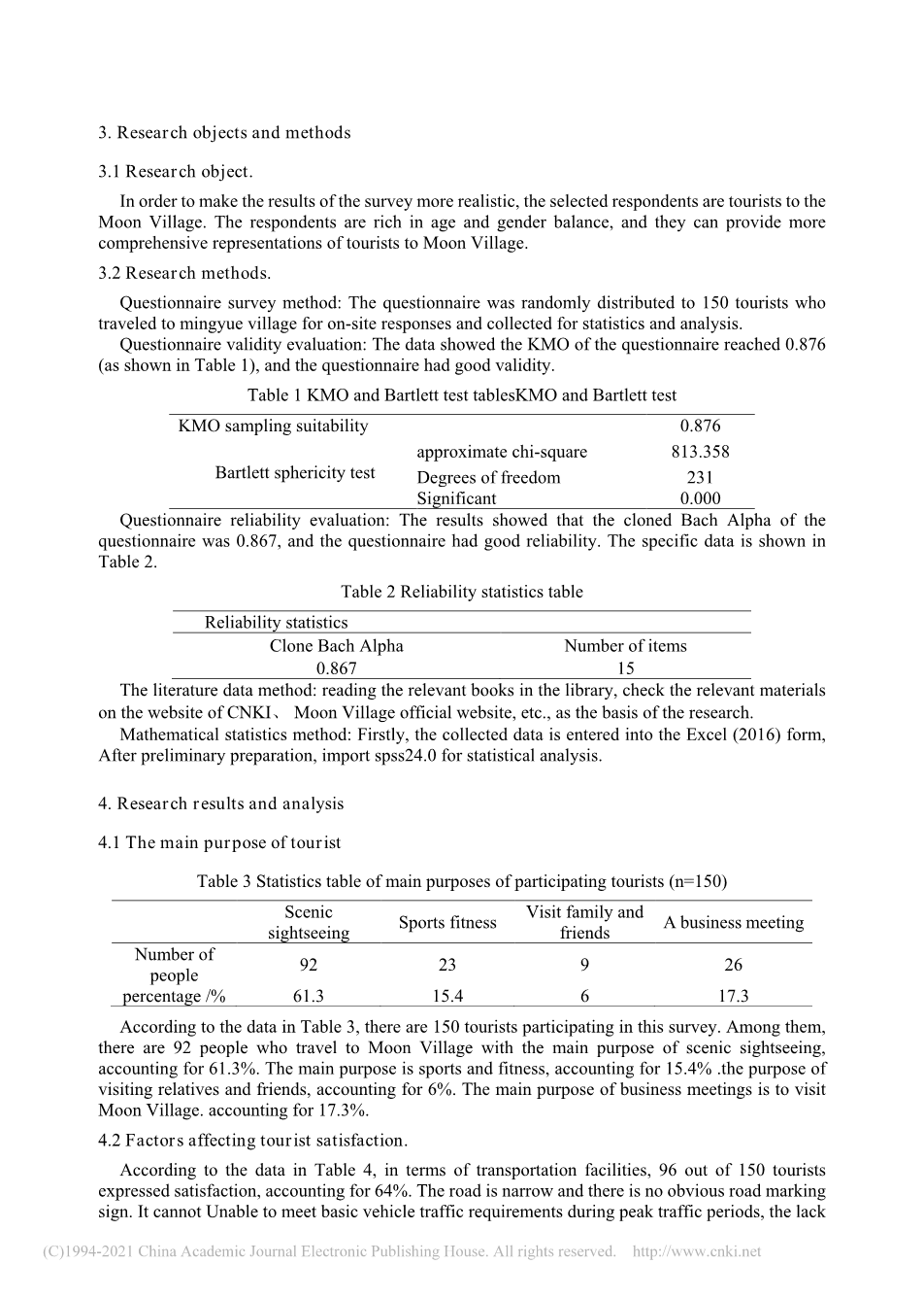 问卷调查方法:将问卷随机分发给150名前往明岳村的游客进行现场回复,并收集统计分析。