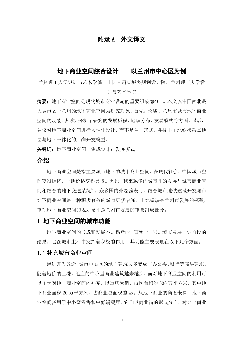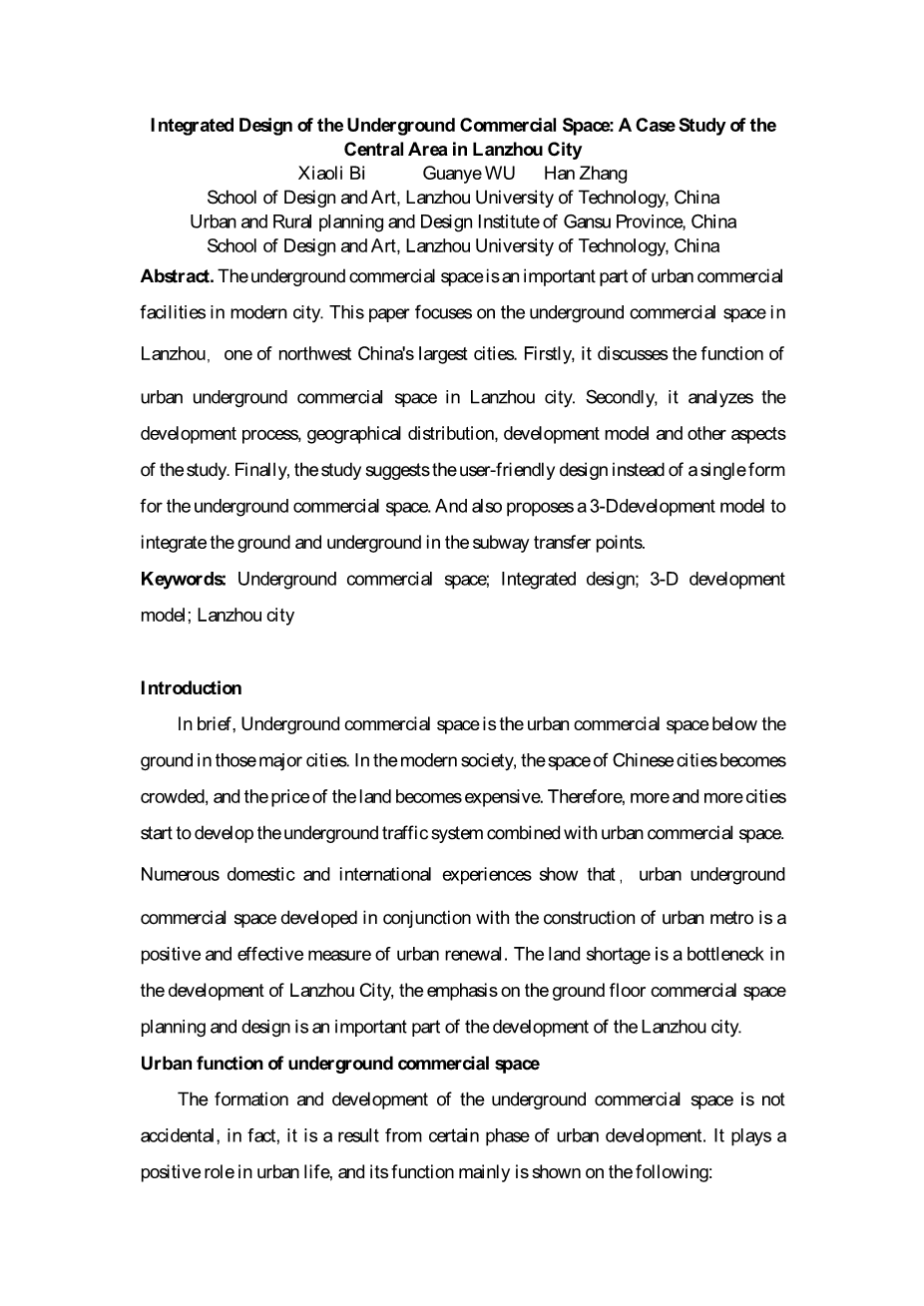 地下商业空间综合设计——以兰州市中心区为例外文翻译资料