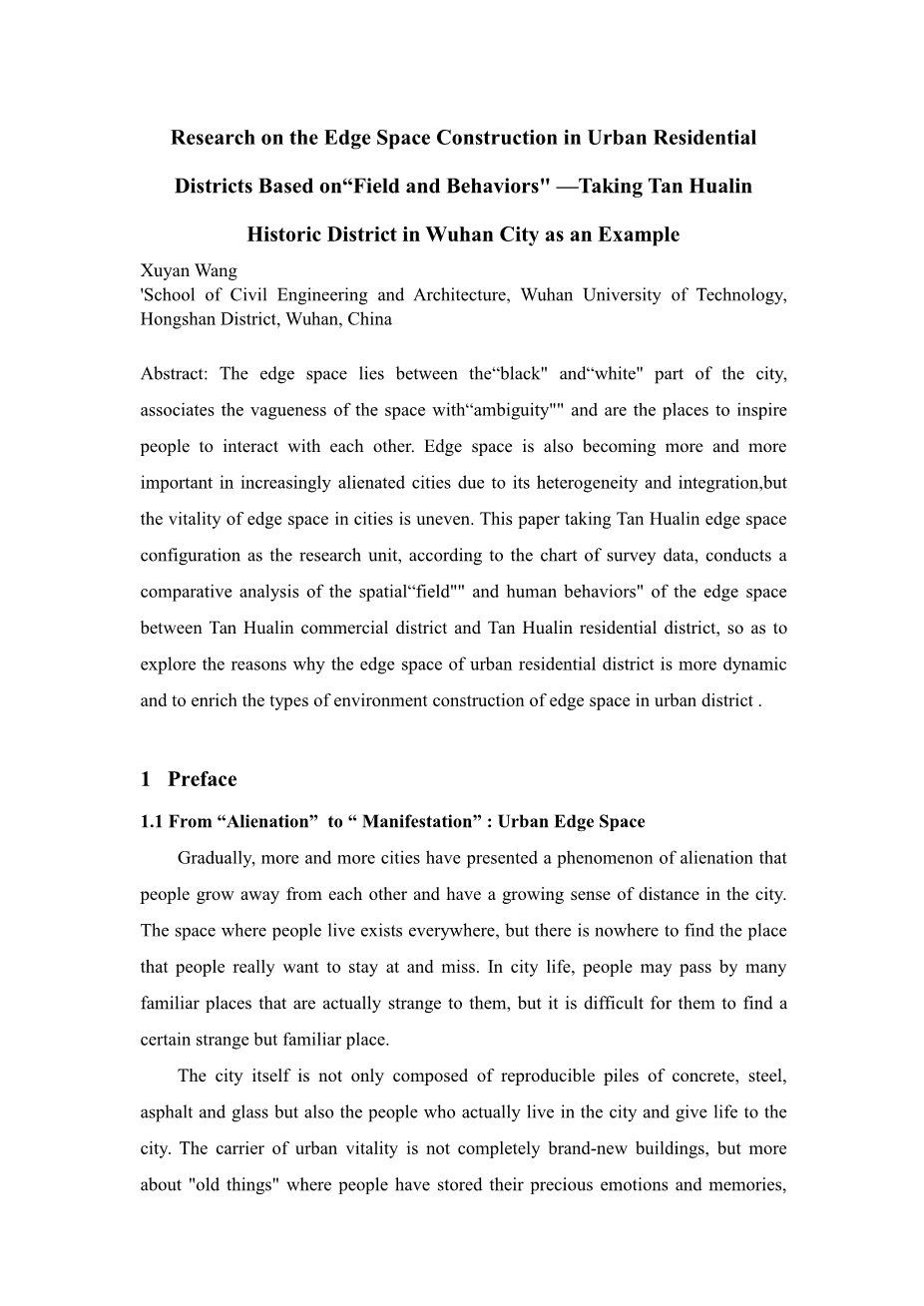 基于“场与行为”的城市居住区边缘空间构建研究——以武汉市谭华林历史街区为例外文翻译资料 2023-07-27 10:51:21 英语原文共 8 页,剩余内容已隐藏,支付完成后下载完整资料 英语译文共 8 页,剩余内容已隐藏,支付完成后下载完整资料 资料编号:[604864],资料为PDF文档或Word文档,PDF文档可免费转换为Word 您需要先支付 30元 才能查看全部内容!立即支付 发小红书推广免费获取该资料资格。点击链接进入获取推广文案即可: Ai一键组稿 | 降AI率 | 降重复率 | 论文一键排版 PREVIOUS NEXT 您可能感兴趣的文章 基于生态经济分析的无锡市空间功能区划外文翻译资料 基于卫星数据和GIS技术的城市通风评价研究与应用-以北京市怀柔区雁栖湖生态城为例外文翻译资料 我国城市交通问题分析与道路建设规划管理研究外文翻译资料 第一线的可持续性转型,锁定本地规划领域并进行更改外文翻译资料 优化空间规划,以实现城市可持续发展的长期目标外文翻译资料 旅游规划与国家愿景:旅游回顾——斯里兰卡的政策外文翻译资料 生态文明建设是发展低碳经济的根本途径外文翻译资料 中国北京市社区养老护理资源的空间可达性分析外文翻译资料 在北京,中国住宅护理资源的空间访问外文翻译资料 联邦国家实体自治条件不断增强的服务业发展战略外文翻译资料