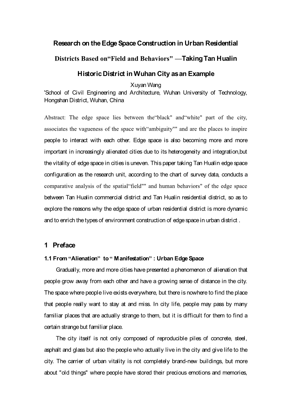 基于“场与行为”的城市居住区边缘空间构建研究——以武汉市谭华林历史街区为例外文翻译资料