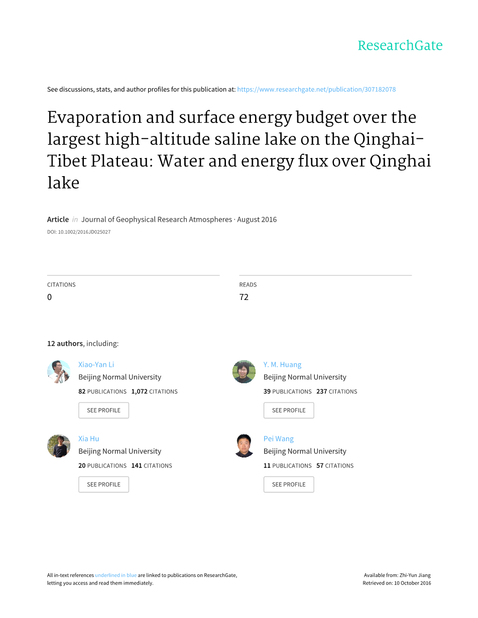 青藏高原上最大的高海拔盐湖—青海湖的蒸发和表面能量收支:青海湖的水热通量外文翻译资料