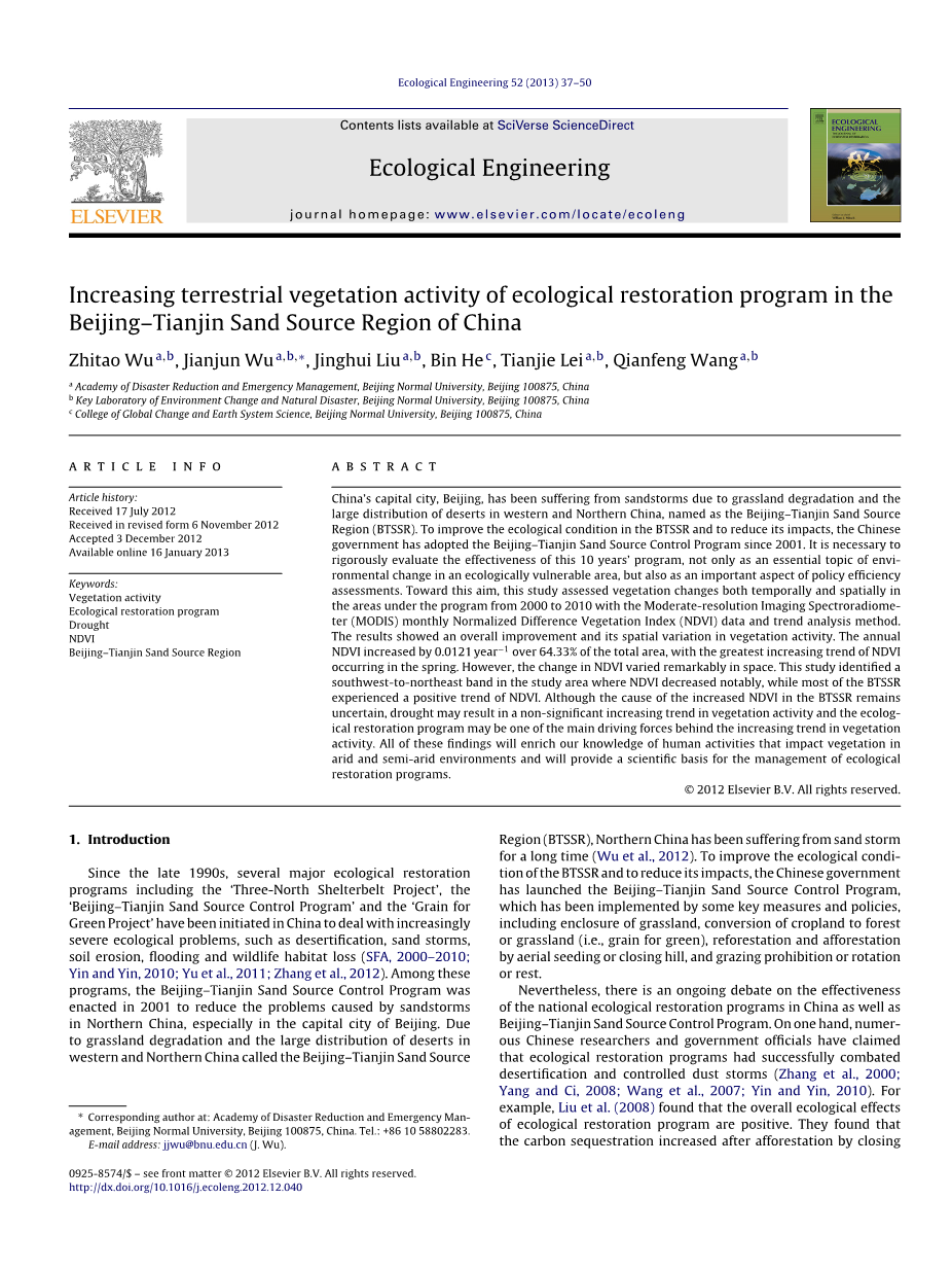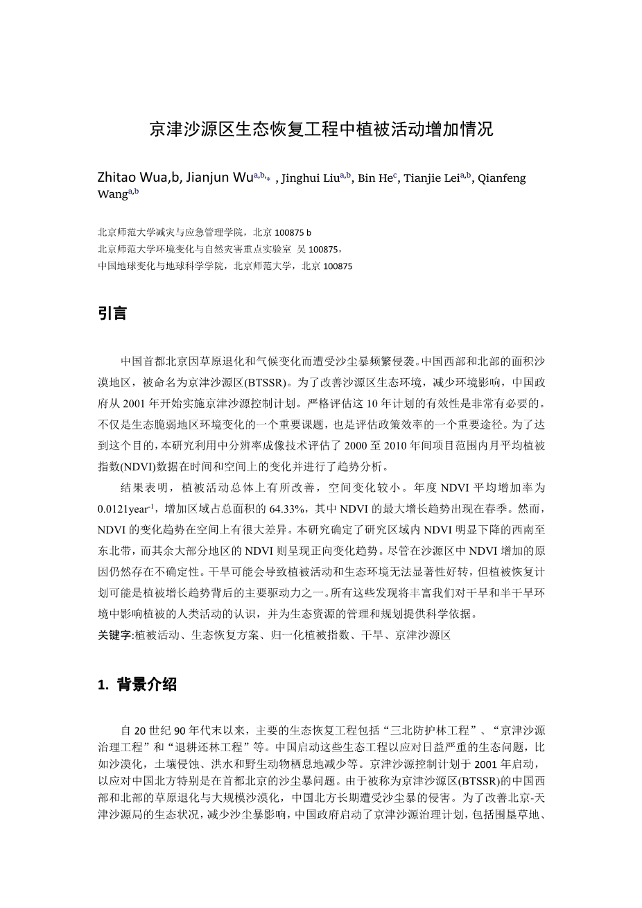 京津沙源区生态恢复工程中植被活动增加情况外文翻译资料 2023-03-01 11:11:42 英语原文共 14 页,剩余内容已隐藏,支付完成后下载完整资料 英语译文共 20 页,剩余内容已隐藏,支付完成后下载完整资料 资料编号:[22559],资料为PDF文档或Word文档,PDF文档可免费转换为Word 您需要先支付 30元 才能查看全部内容!立即支付 发小红书推广免费获取该资料资格。点击链接进入获取推广文案即可: Ai一键组稿 | 降AI率 | 降重复率 | 论文一键排版 PREVIOUS NEXT 您可能感兴趣的文章 不同高温胁迫模式对葡萄叶片光合能力的胁迫程度评价文献综述 近40年湖南省水稻低温冷害时空变化特征文献综述 浙江省早稻高温热害分布规律及危险性分析文献综述 太湖水体热储量的算法对比和时间变化特征文献综述 冬小麦和夏玉米蒸发蒸腾量估算及其影响因素分析文献综述 三种全球历史降水产品的时空变化对比文献综述 水分胁迫对葡萄氮素利用效率的影响文献综述 江苏省高温分布特征及变化趋势分析开题报告 亚热带人工针叶林储热量的变化特征及其影响因素开题报告 青海东部农业区春小麦对气候变化的脆弱性分析开题报告