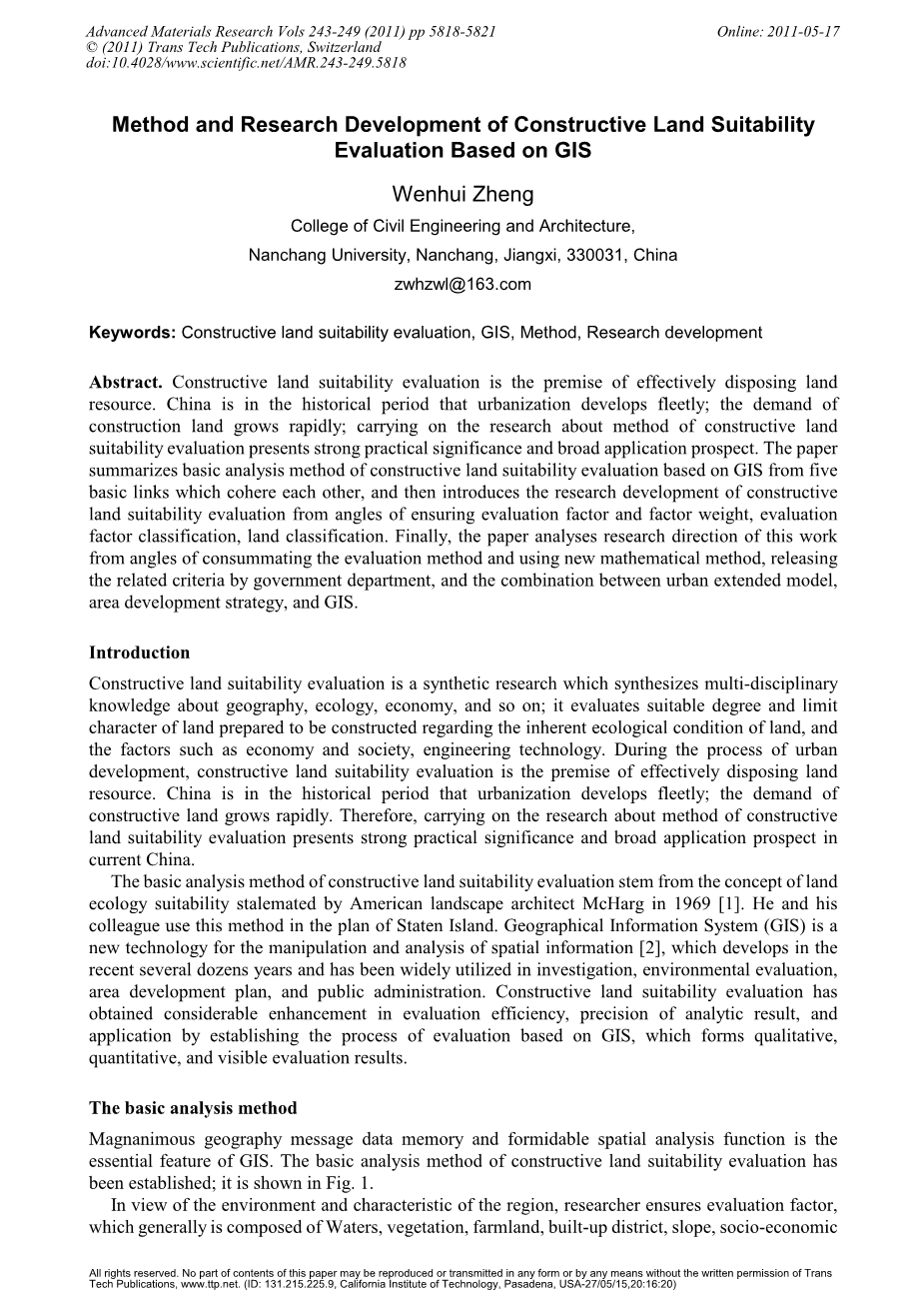 关键词:建设用地适宜性评价,GIS方法,研究进展