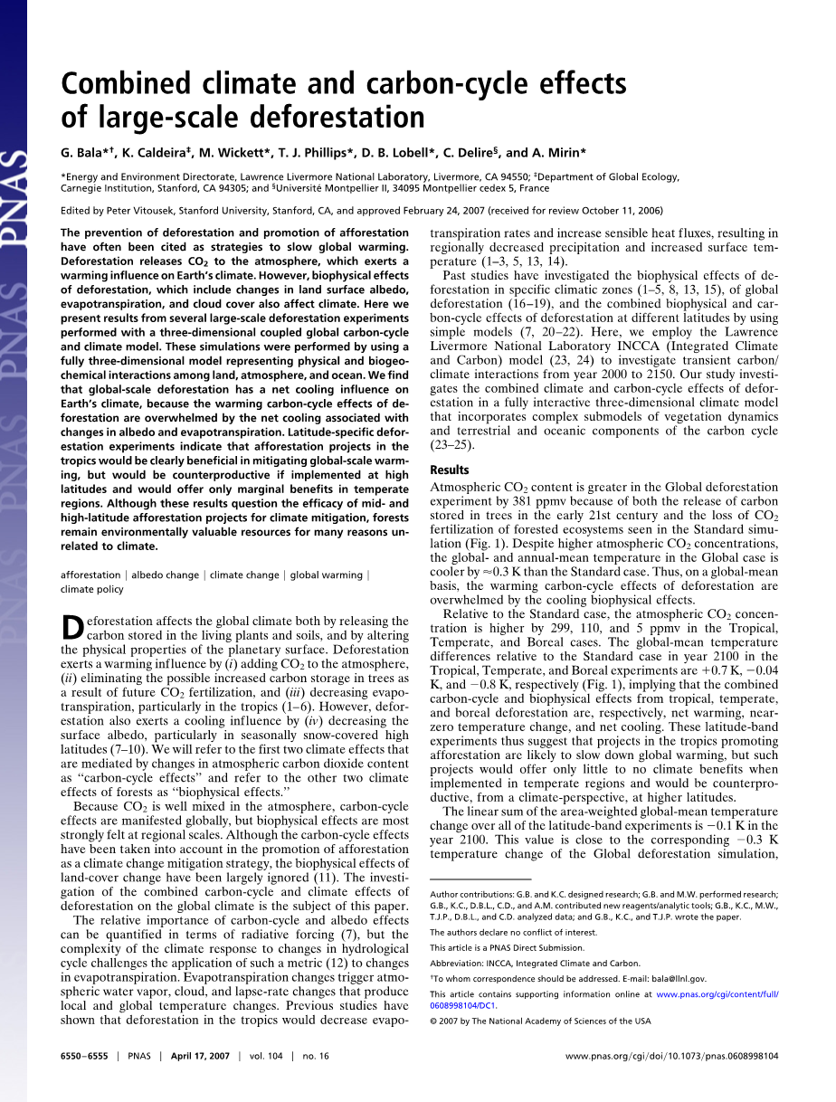 G. Bala,*dagger; K. Caldeira,Dagger; M. Wickett,* T. J. Phillips,* D. B. Lobell,* C. Delire,sect; and A. Mirin*
