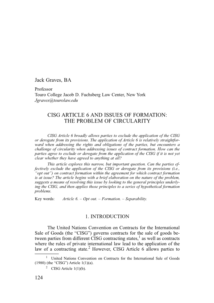 《联合国国际货物销售合同公约》第6条和形成问题:循环问题