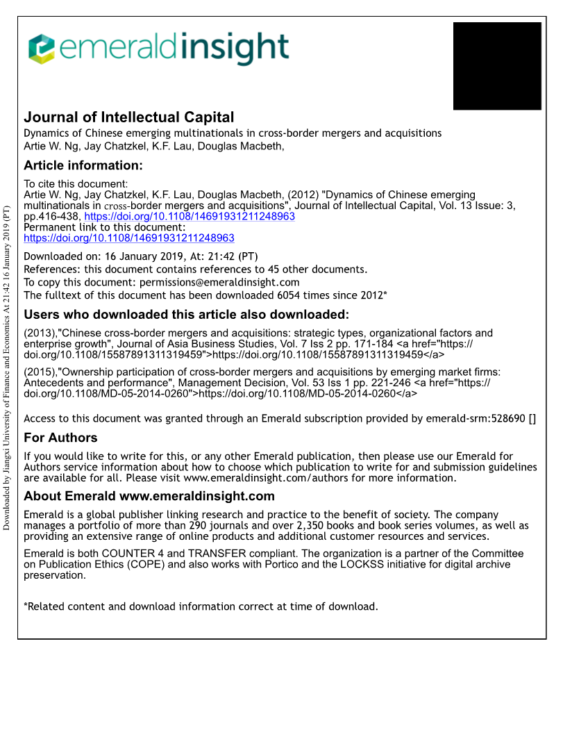 关键词 中国;并购;跨国公司;中国跨国公司;知识资本;知识转移;中国文化;动态能力;逆向技术转移