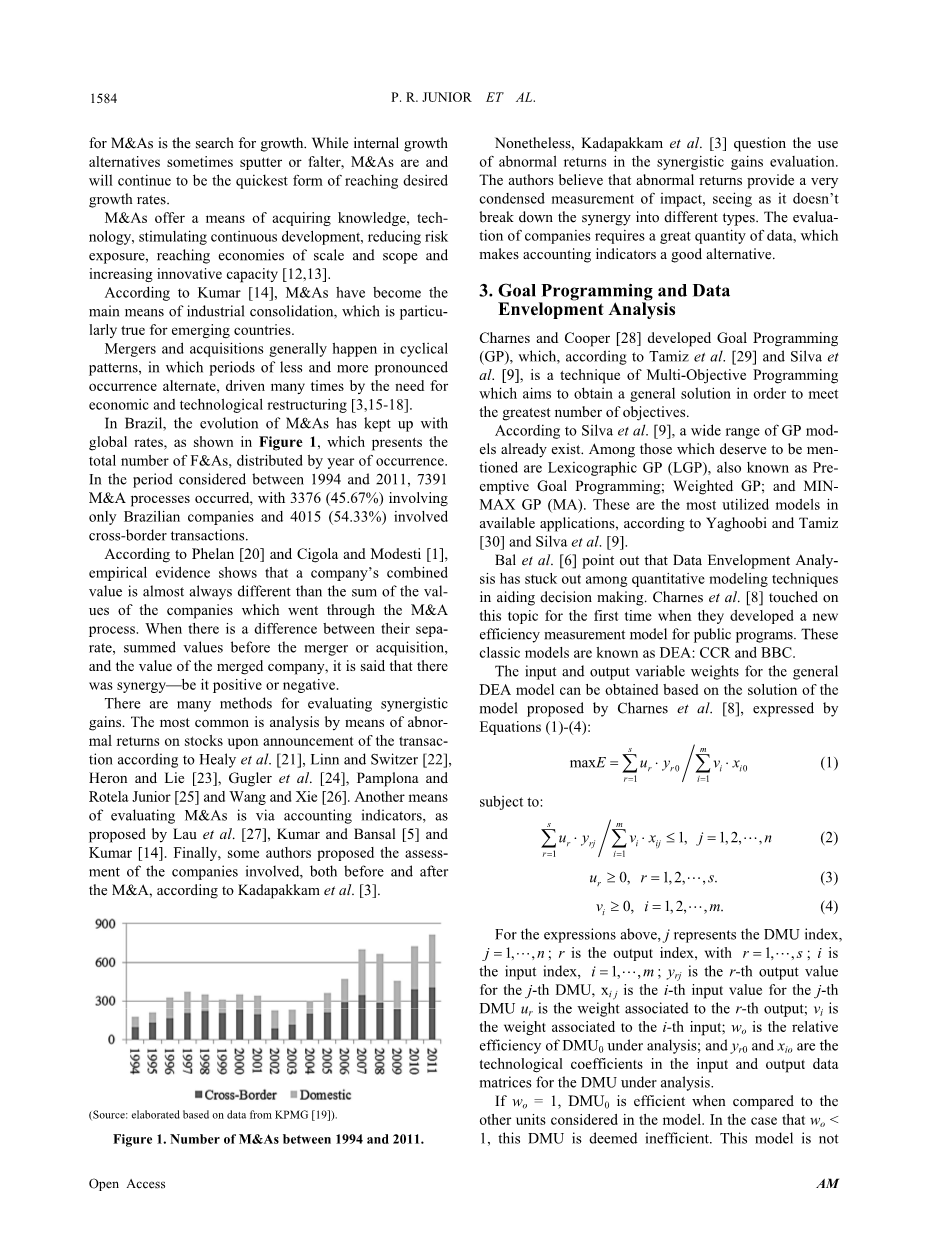 因此,本文的目的是利用GP和DEA模型(GPDEA)来评估巴西上市公司之间的并购交易事项的效率。