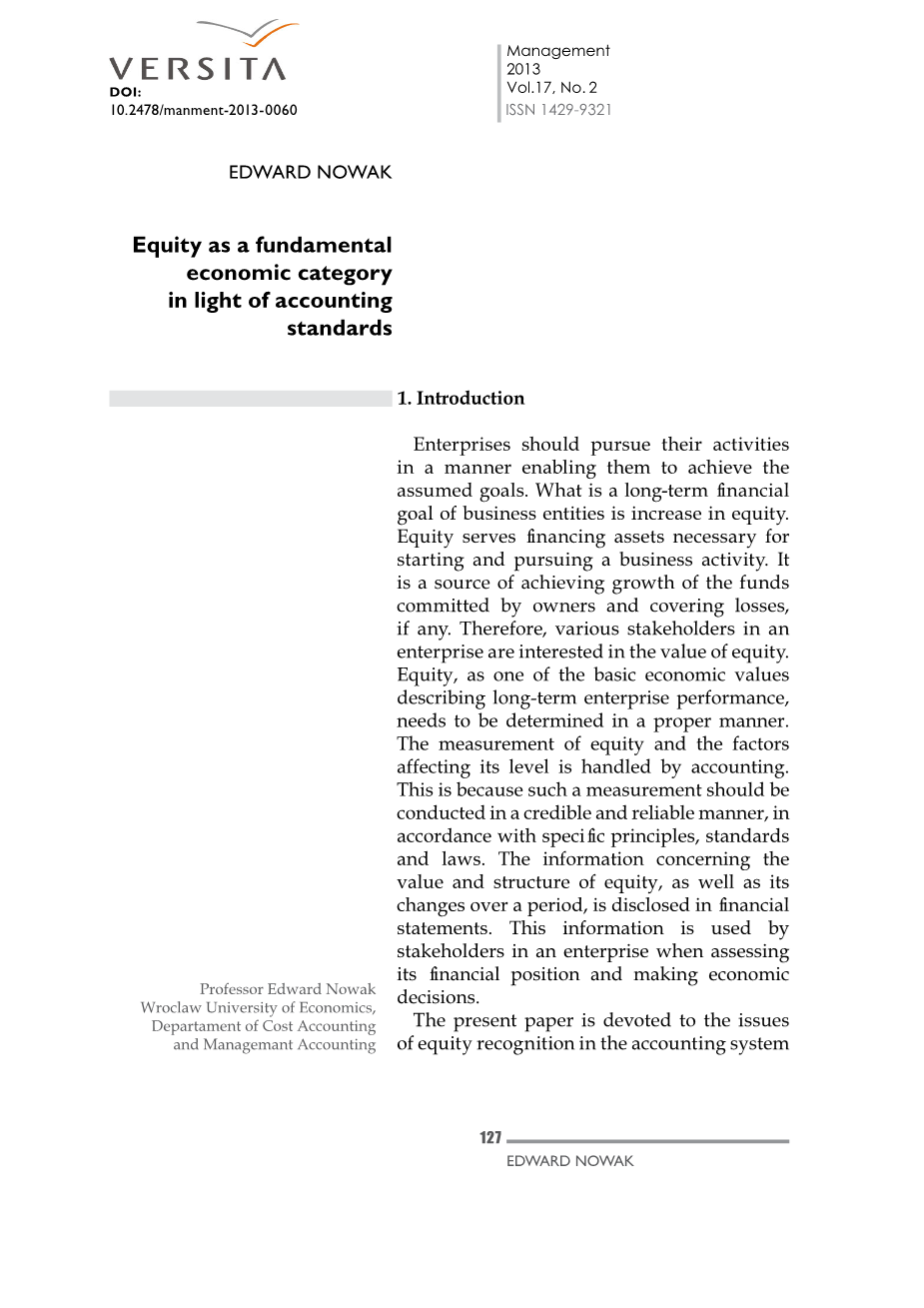 企业绩效的计量是会计的基本任务之一。股权是会计制度中一个特殊的财务范畴。在企业从事的活动中,衡平法的重要性如此之大,以致于其确定的方法是具体的。在会计条例中。“财务报告条例”,特别是“国际财务报告准则”和“波兰会计法”,说明了关于股权的信息的表示方式。由于这些规定,关于公平、其水平和结构的信息具有可靠性和相关性的特点。这是因为企业中的利益相关者在做出经济