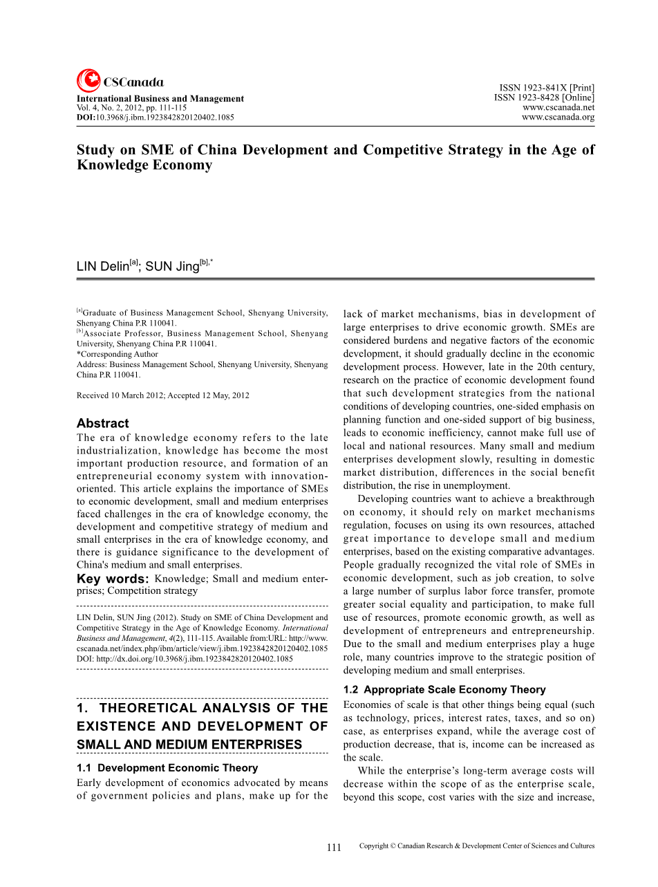 知识经济时代中国中小企业发展与竞争战略研究外文翻译资料 2023-06-27 08:54:08 英语原文共 5 页,剩余内容已隐藏,支付完成后下载完整资料 英语译文共 3 页,剩余内容已隐藏,支付完成后下载完整资料 资料编号:[603297],资料为PDF文档或Word文档,PDF文档可免费转换为Word 您需要先支付 30元 才能查看全部内容!立即支付 发小红书推广免费获取该资料资格。点击链接进入获取推广文案即可: Ai一键组稿 | 降AI率 | 降重复率 | 论文一键排版 PREVIOUS NEXT 您可能感兴趣的文章 基于Hedonic模型的地铁沿线房地产价格影响因素分析–以苏州地铁2号线沿线为例开题报告 江苏省上市公司经济增加值测算与结果分析开题报告 互联网对公司财务管理的影响—–以青岛海尔集团为例开题报告 产权性质、研发投入与企业绩效–基于信息技术企业的实证分析文献综述 女性管理者对碳信息披露水平的影响文献综述 基于COSO内部控制框架的我国制造业上市公司企业信息披露现状评价开题报告 内部控制与企业价值增长文献综述 我国分行业经济增加值测算与结果分析开题报告 盈余管理与投资效率的相关性研究——以新能源行业上市公司为例开题报告 外商投资对江苏省上市公司职工收入的影响开题报告