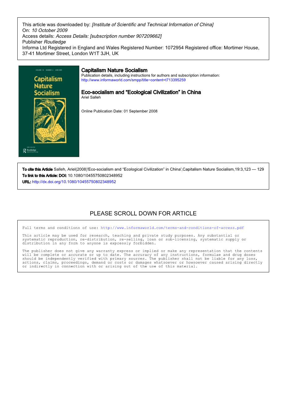 本文引用Salleh,Ariel(2008)“中国的生态社会主义和生态文明”,《资本主义自然社会主义》,19:3123-129。