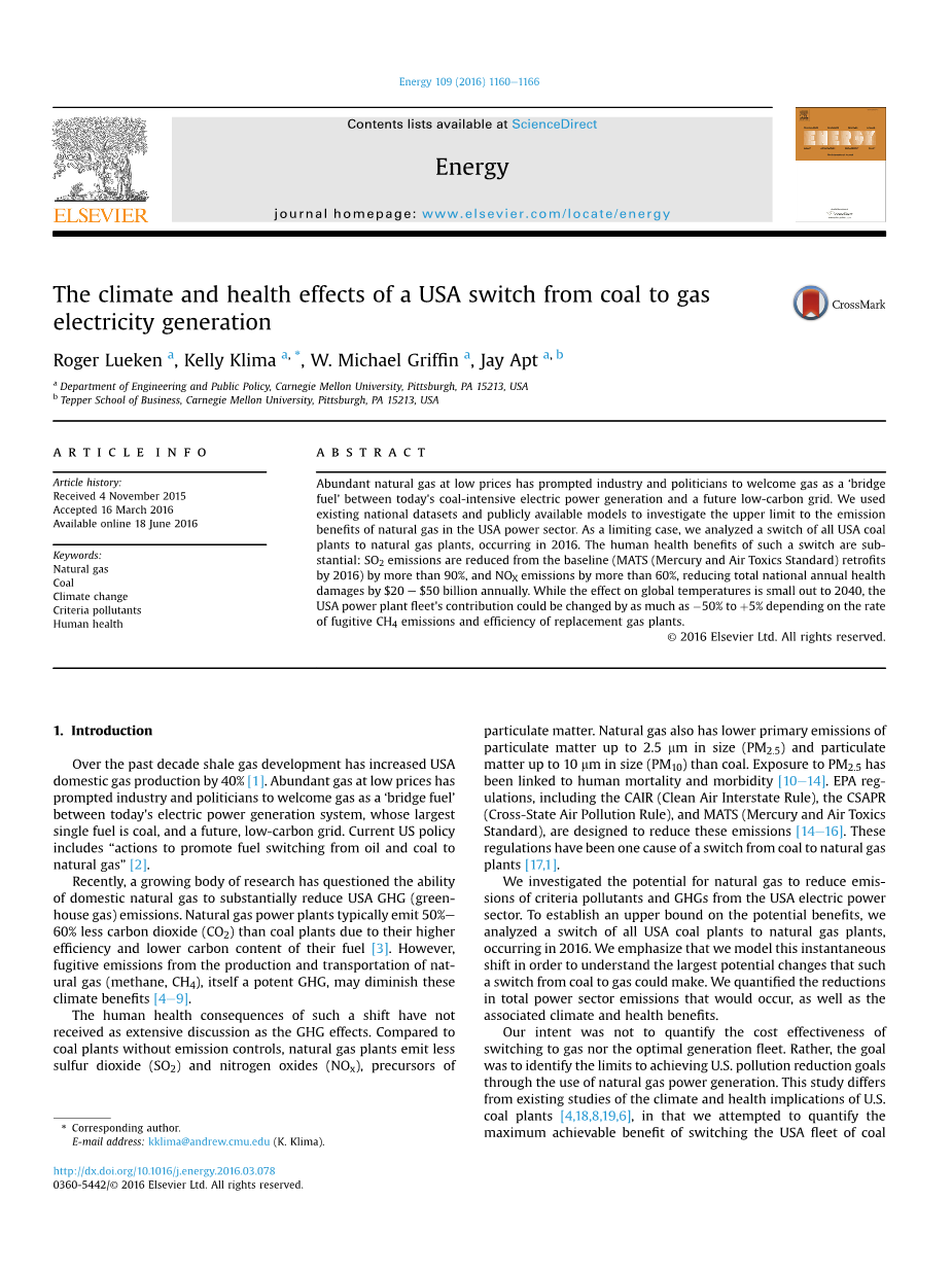 关键词:天然气;煤炭;气候变化;标准污染物;人类健康