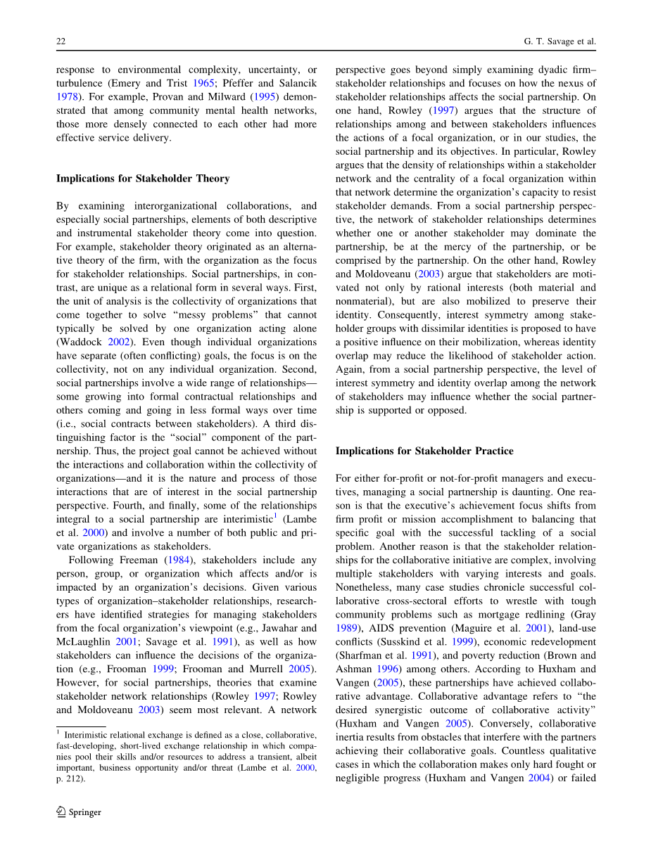 Brown, L. D., amp; Ashman, D. (1996). Participation, social capital,and intersectoral problem-solving: African and Asian cases in promoting Civil Society-government cooperation: A selection of IDR reports. Boston, MA: IDR.Bunn, M. D., Savage, G. T., amp; Holloway, B. B. (2002). Stakeholder analysis for multi-sector innovations. Journal of Business amp;Industrial Marketing, 17, 181–203.