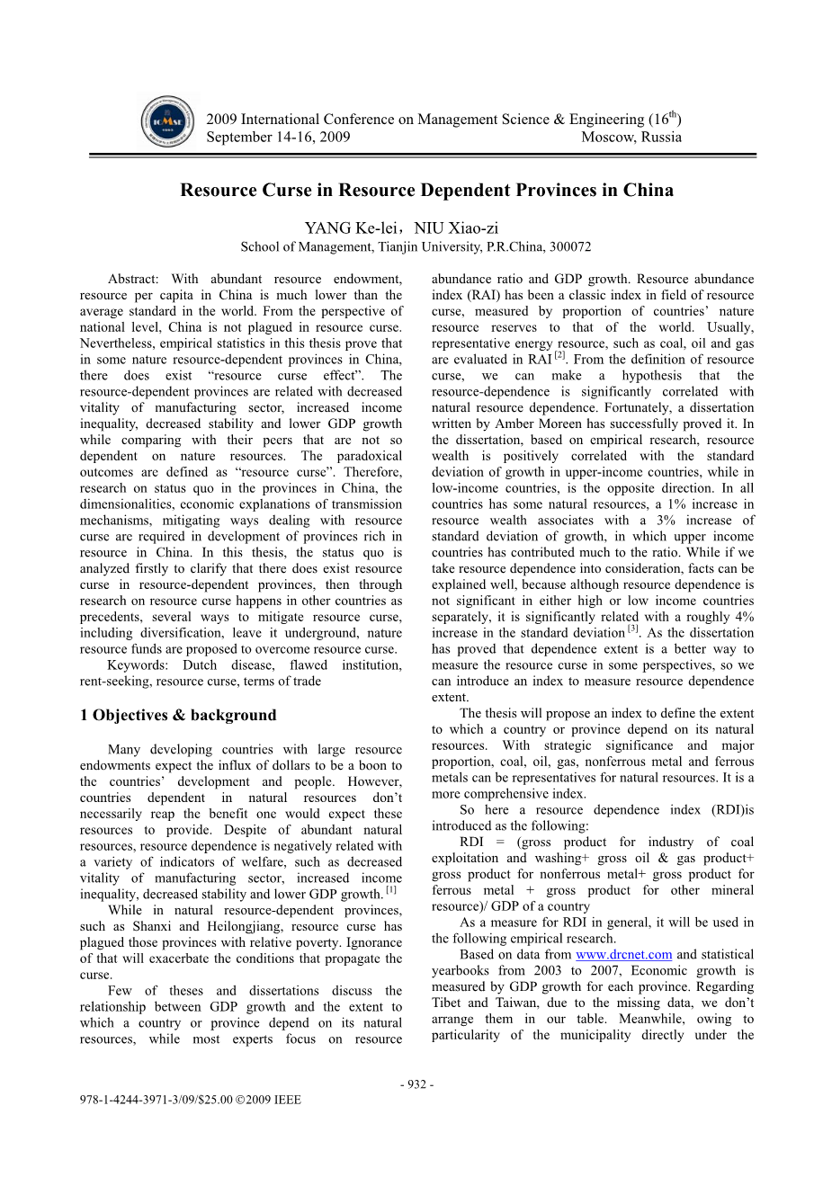中国资源依赖型省份的资源诅咒外文翻译资料