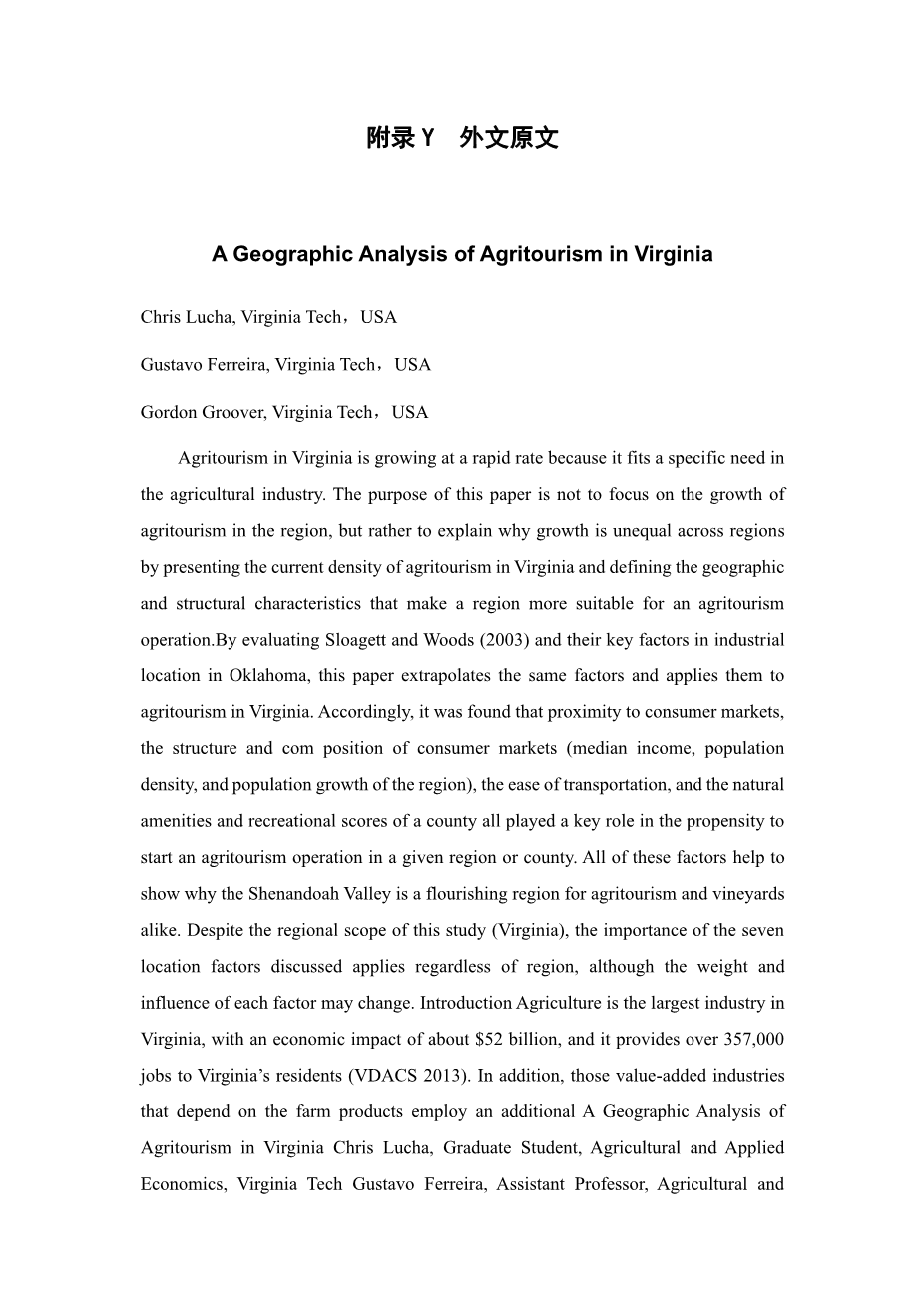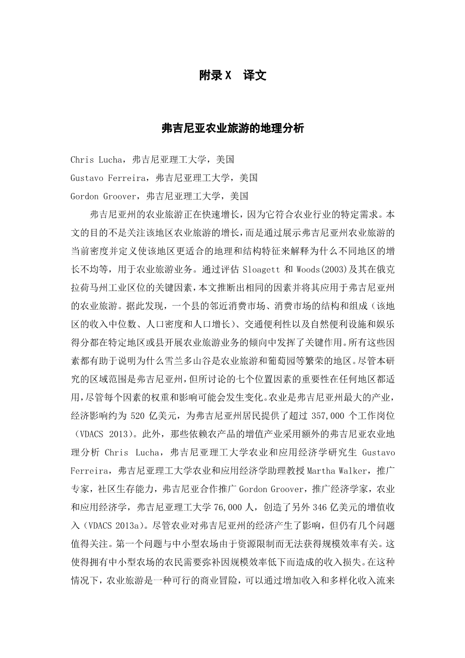 弗吉尼亚农业旅游的地理分析外文翻译资料 2023-06-25 09:40:02 英语原文共 5 页,剩余内容已隐藏,支付完成后下载完整资料 英语译文共 3 页,剩余内容已隐藏,支付完成后下载完整资料 资料编号:[603563],资料为PDF文档或Word文档,PDF文档可免费转换为Word 您需要先支付 30元 才能查看全部内容!立即支付 发小红书推广免费获取该资料资格。点击链接进入获取推广文案即可: Ai一键组稿 | 降AI率 | 降重复率 | 论文一键排版 PREVIOUS NEXT 您可能感兴趣的文章 新型城镇化视角下基层社会治理模式研究文献综述 基于SWOT分析的民营企业朴素式创新研究文献综述 城市社区居家养老需求影响因素研究——以南京市为例文献综述 中国煤炭利用生态效率评价及提升对策开题报告 社区融合度及其影响因素研究——以姜堰三水四大社区为例开题报告 不确定条件下人员疏散路径选择决策行为模型研究文献综述 价值工程在饭店成本控制中的应用以某中等城市经济型饭店为例外文翻译资料 管理前厅部:马来西亚酒店的人员配置问题外文翻译资料 影响酒店运维成本的因素外文翻译资料 在马来西亚巴生谷地区,酒店员工满意度和忠诚度的联系外文翻译资料