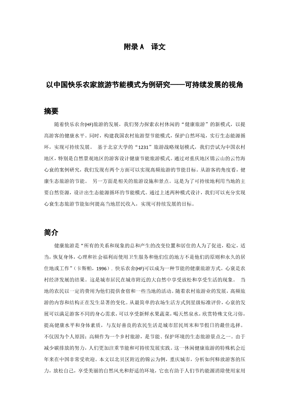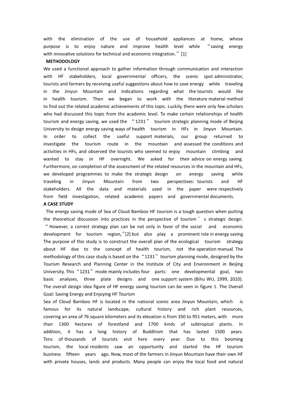 以中国快乐农家旅游节能模式为例研究——可持续发展的视角外文翻译资料 2023-06-25 09:42:08 英语原文共 9 页,剩余内容已隐藏,支付完成后下载完整资料 英语译文共 10 页,剩余内容已隐藏,支付完成后下载完整资料 资料编号:[603553],资料为PDF文档或Word文档,PDF文档可免费转换为Word 您需要先支付 30元 才能查看全部内容!立即支付 发小红书推广免费获取该资料资格。点击链接进入获取推广文案即可: Ai一键组稿 | 降AI率 | 降重复率 | 论文一键排版 PREVIOUS NEXT 您可能感兴趣的文章 新型城镇化视角下基层社会治理模式研究文献综述 基于SWOT分析的民营企业朴素式创新研究文献综述 城市社区居家养老需求影响因素研究——以南京市为例文献综述 中国煤炭利用生态效率评价及提升对策开题报告 社区融合度及其影响因素研究——以姜堰三水四大社区为例开题报告 不确定条件下人员疏散路径选择决策行为模型研究文献综述 价值工程在饭店成本控制中的应用以某中等城市经济型饭店为例外文翻译资料 管理前厅部:马来西亚酒店的人员配置问题外文翻译资料 影响酒店运维成本的因素外文翻译资料 在马来西亚巴生谷地区,酒店员工满意度和忠诚度的联系外文翻译资料