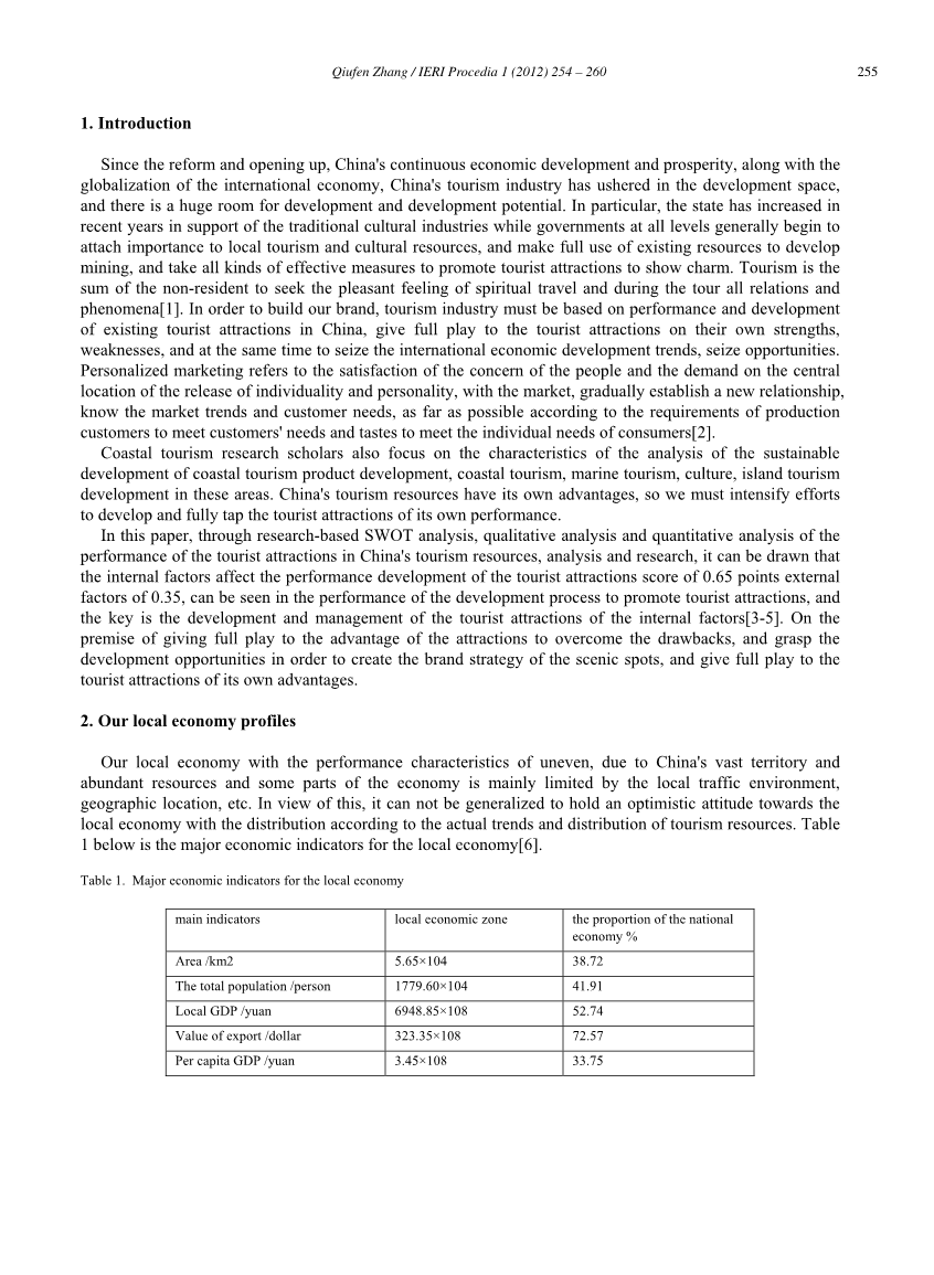 在本文中,通过使用基于调查的SWOT分析、定性分析和定量分析的研究方法,我们对中国旅游资源中游览胜地的绩效进行分析和研究,可以得出结论,影响旅游景点绩效发展的因素中,内部因素占百分之六十五,外部因素占百分之三十五。在促进旅游景点吸引力提升过程中,我们可以看出这些因素的重要性。其中重中之重的是:开发和管理旅游景点的内部因素。在充分发挥游览胜地自身优势的前提下,我们克服其缺陷,抓住发展机遇,打造风景区的品牌策略,充分发挥旅游景点的自身优势。