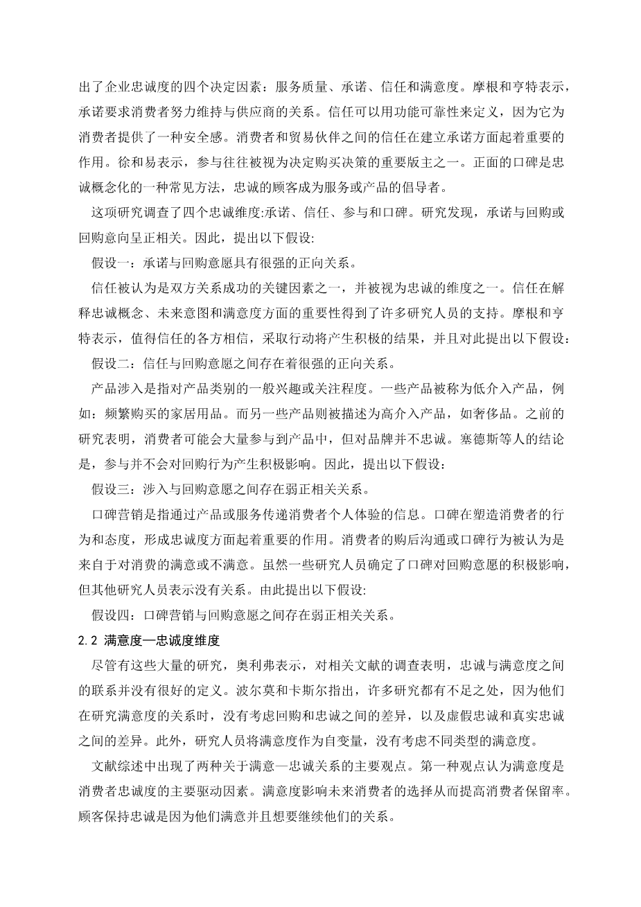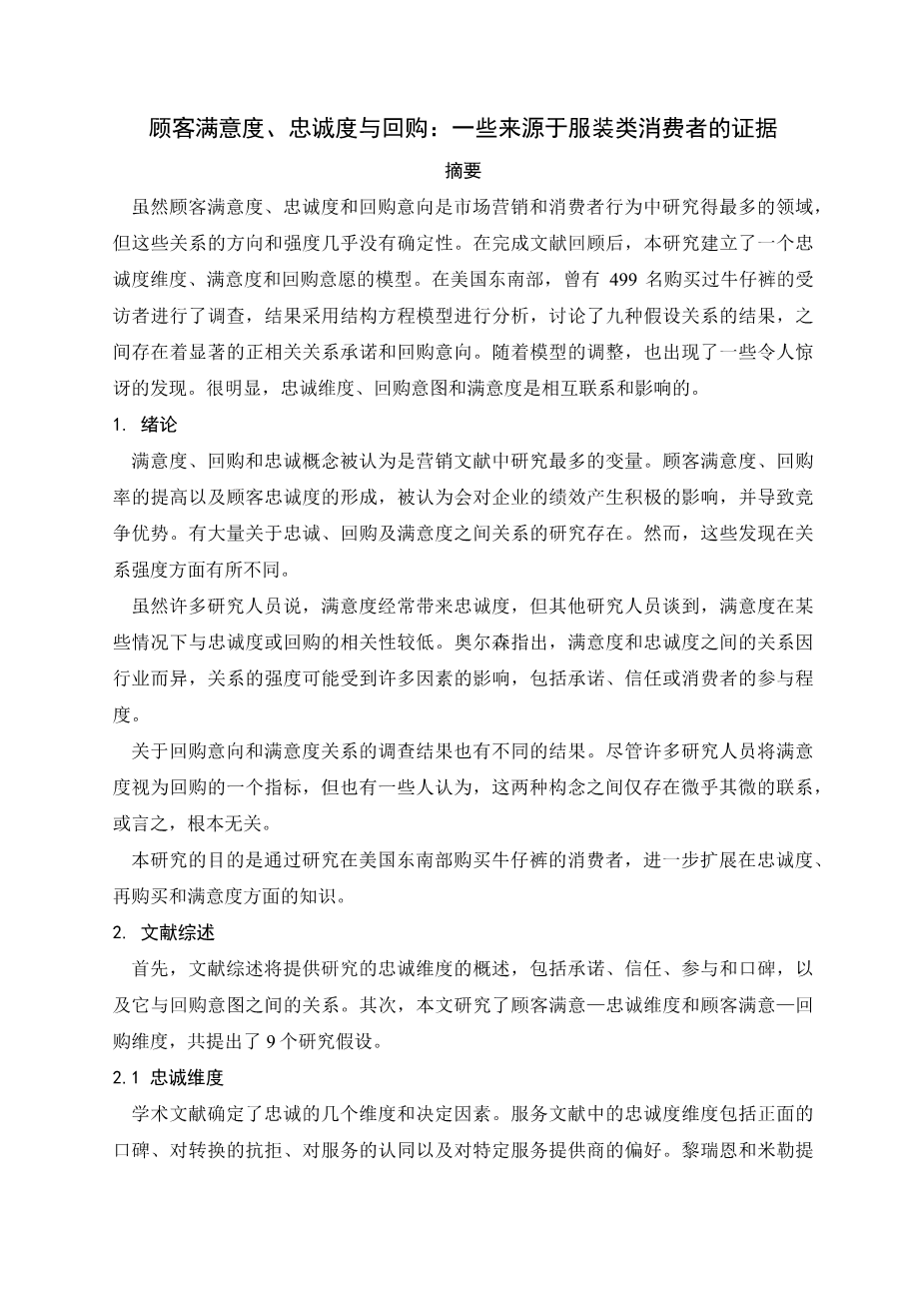 顾客满意度、忠诚度与回购: – -些来源于服装类消费者的证据外文翻译资料 2023-02-15 10:38:50 英语原文共 12 页,剩余内容已隐藏,支付完成后下载完整资料 英语译文共 9 页,剩余内容已隐藏,支付完成后下载完整资料 资料编号:[412572],资料为PDF文档或Word文档,PDF文档可免费转换为Word 您需要先支付 30元 才能查看全部内容!立即支付 发小红书推广免费获取该资料资格。点击链接进入获取推广文案即可: Ai一键组稿 | 降AI率 | 降重复率 | 论文一键排版 PREVIOUS NEXT 您可能感兴趣的文章 社群电商平台的客户管理体系研究文献综述 腾讯游戏的发展战略分析文献综述 南通“开沙岛”度假村的商业模式研究开题报告 管理类专业学生接受国际教育影响因素的实证研究文献综述 居住环境与通勤时间对员工离职倾向的影响研究文献综述 了解互联网短视频分享的特点:基于对YouTube的测量研究外文翻译资料 连锁经营视角下餐饮行业的营销策略分析外文翻译资料 出租车行业的颠覆性变革:以UBER为例外文翻译资料 可口可乐公司财务分析外文翻译资料 是什么让财富增长?财富敏感财务报表分析外文翻译资料