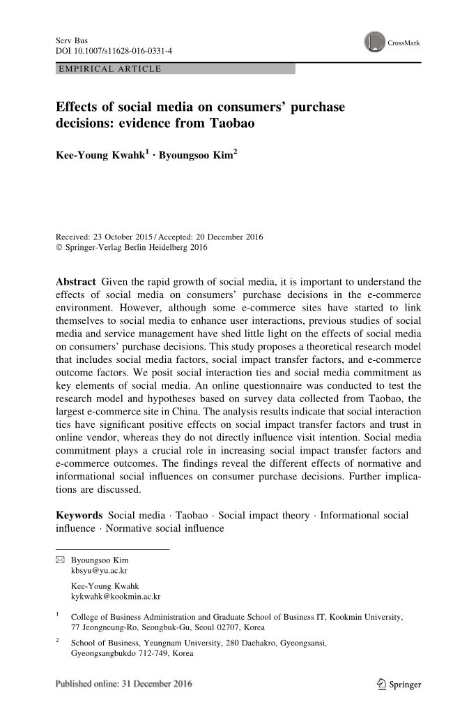 社交媒体对消费者购买决策的影响:来自淘宝网的证据分析外文翻译资料 2023-02-15 10:39:21 英语原文共 27 页,剩余内容已隐藏,支付完成后下载完整资料 英语译文共 9 页,剩余内容已隐藏,支付完成后下载完整资料 资料编号:[412570],资料为PDF文档或Word文档,PDF文档可免费转换为Word 您需要先支付 30元 才能查看全部内容!立即支付 发小红书推广免费获取该资料资格。点击链接进入获取推广文案即可: Ai一键组稿 | 降AI率 | 降重复率 | 论文一键排版 PREVIOUS NEXT 您可能感兴趣的文章 社群电商平台的客户管理体系研究文献综述 腾讯游戏的发展战略分析文献综述 南通“开沙岛”度假村的商业模式研究开题报告 管理类专业学生接受国际教育影响因素的实证研究文献综述 居住环境与通勤时间对员工离职倾向的影响研究文献综述 了解互联网短视频分享的特点:基于对YouTube的测量研究外文翻译资料 连锁经营视角下餐饮行业的营销策略分析外文翻译资料 出租车行业的颠覆性变革:以UBER为例外文翻译资料 可口可乐公司财务分析外文翻译资料 是什么让财富增长?财富敏感财务报表分析外文翻译资料