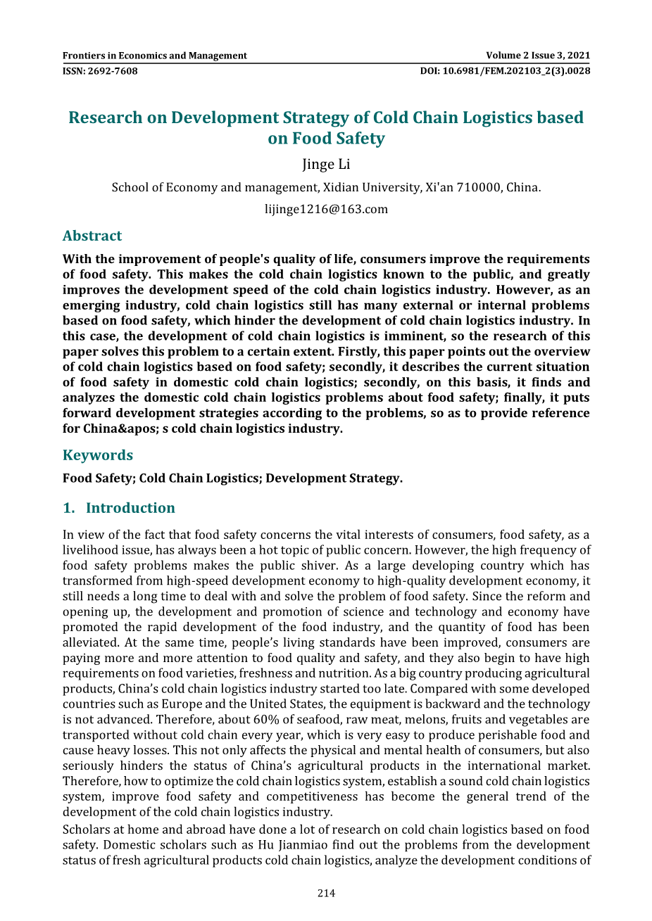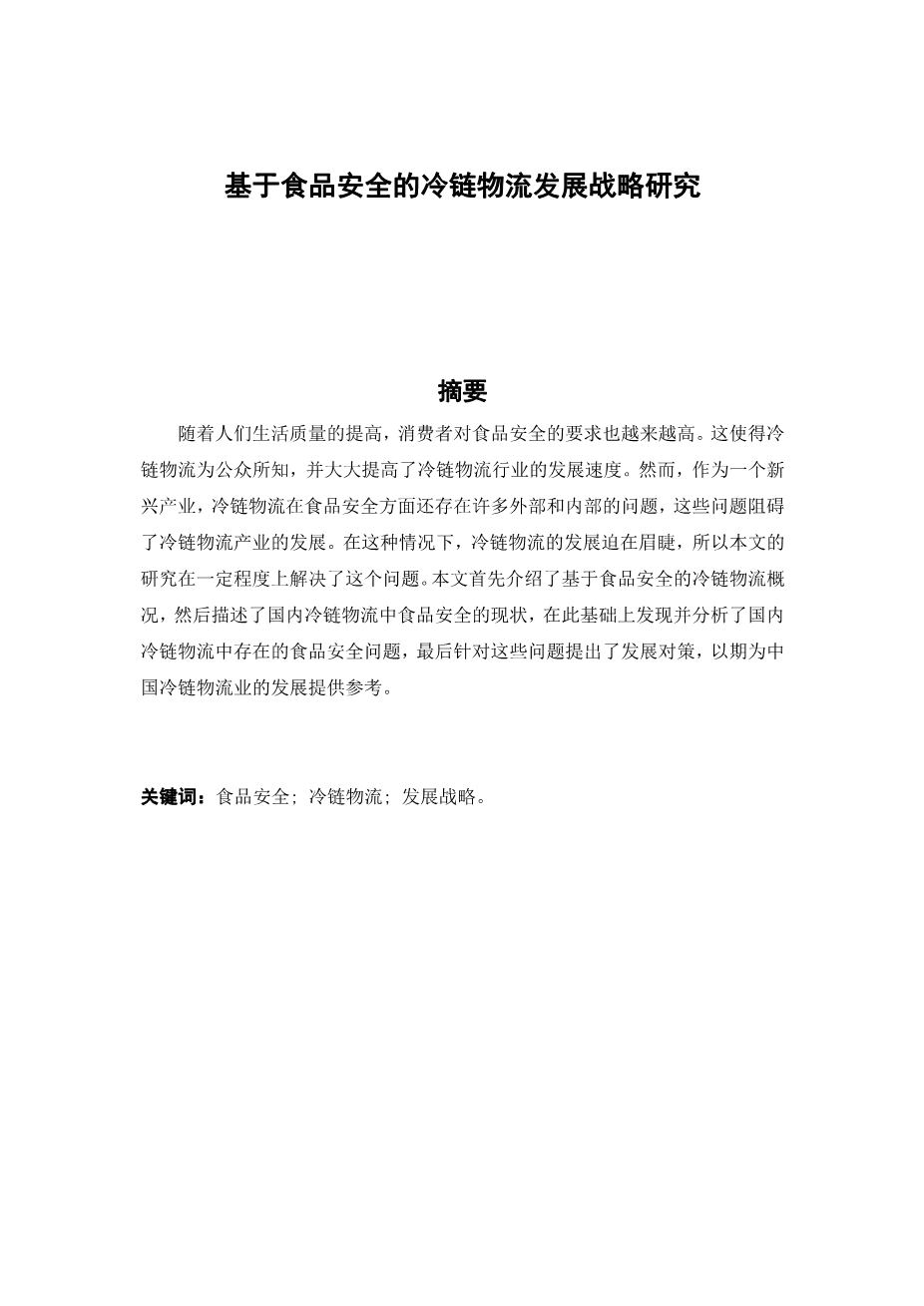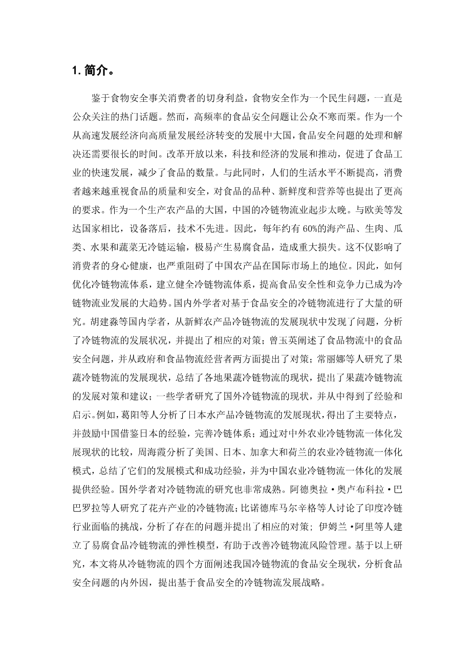 基于食品安全的冷链物流发展战略研究外文翻译资料