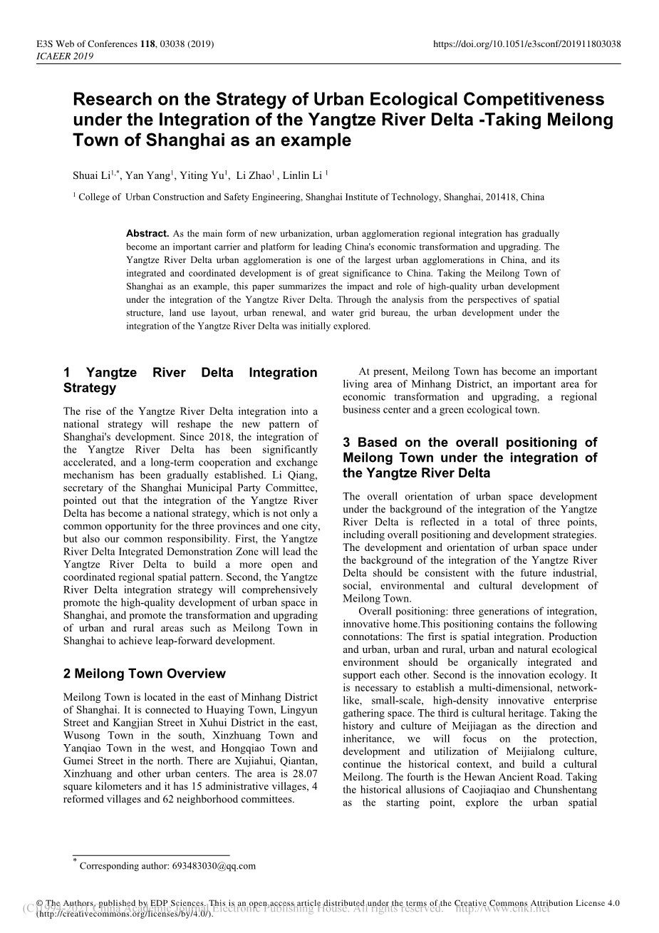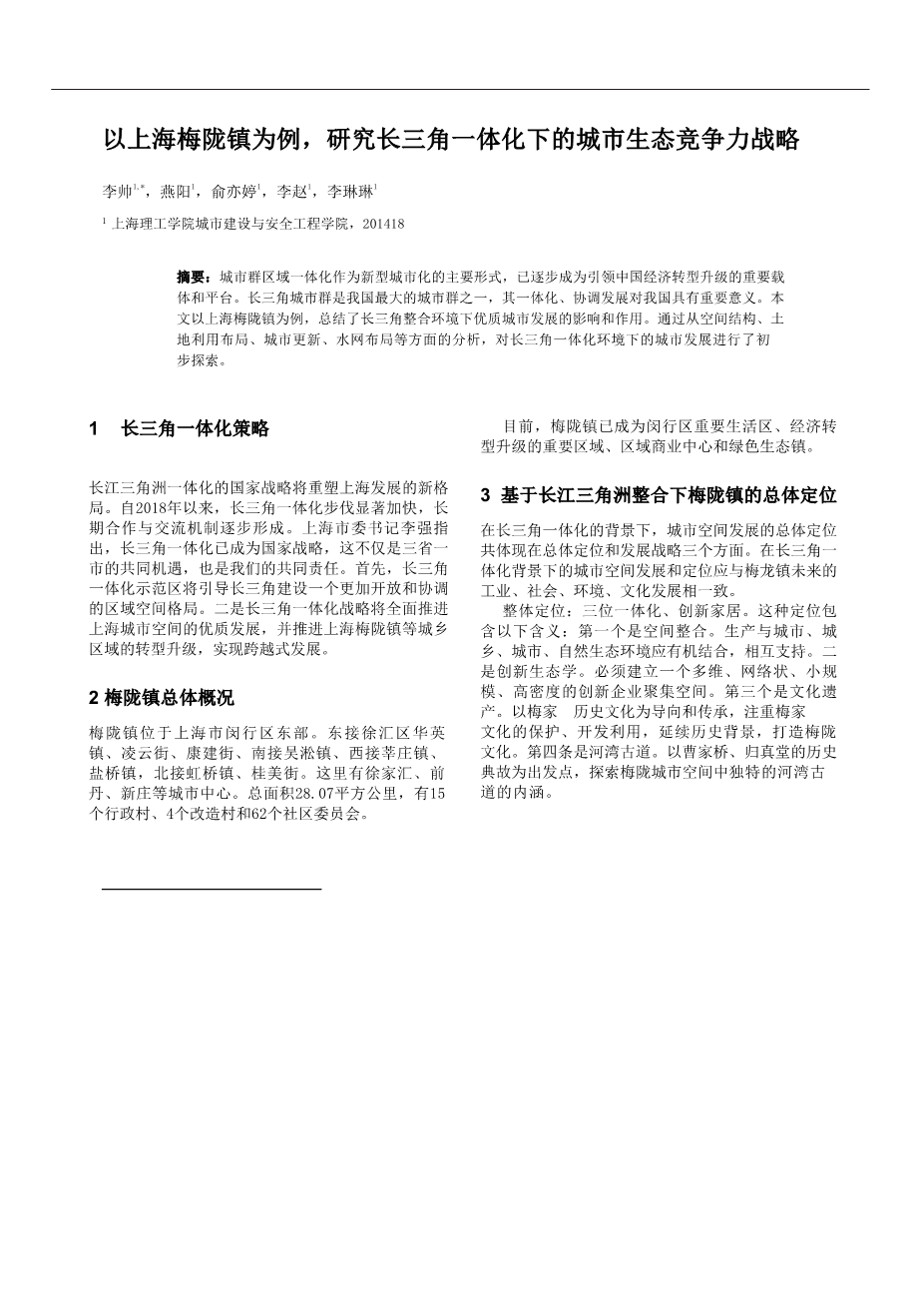 以上海梅陇镇为例,研究长三角一体化下的城市生态竞争力战略外文翻译资料