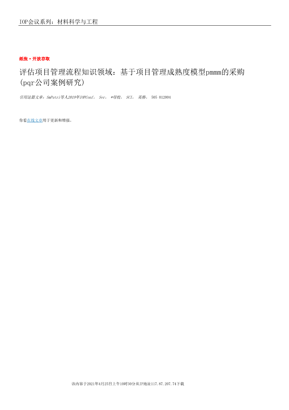 评估项目管理流程知识领域:基于项目管理成熟度模型pmmm的采购 (pqr公司案例研究)外文翻译资料 2023-02-22 19:27:34 英语原文共 9 页,剩余内容已隐藏,支付完成后下载完整资料 英语译文共 9 页,剩余内容已隐藏,支付完成后下载完整资料 资料编号:[406107],资料为PDF文档或Word文档,PDF文档可免费转换为Word 您需要先支付 30元 才能查看全部内容!立即支付 发小红书推广免费获取该资料资格。点击链接进入获取推广文案即可: Ai一键组稿 | 降AI率 | 降重复率 | 论文一键排版 PREVIOUS NEXT 您可能感兴趣的文章 社群电商平台的客户管理体系研究文献综述 腾讯游戏的发展战略分析文献综述 南通“开沙岛”度假村的商业模式研究开题报告 管理类专业学生接受国际教育影响因素的实证研究文献综述 居住环境与通勤时间对员工离职倾向的影响研究文献综述 了解互联网短视频分享的特点:基于对YouTube的测量研究外文翻译资料 连锁经营视角下餐饮行业的营销策略分析外文翻译资料 出租车行业的颠覆性变革:以UBER为例外文翻译资料 可口可乐公司财务分析外文翻译资料 是什么让财富增长?财富敏感财务报表分析外文翻译资料