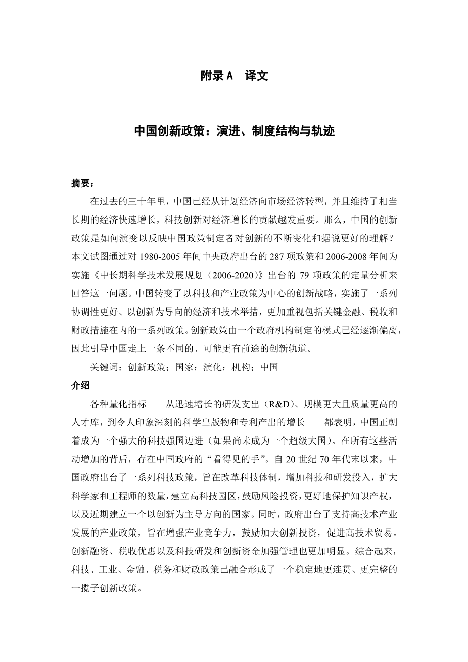 中国创新政策:演进、制度结构与轨迹外文翻译资料 2023-02-23 11:23:35 英语原文共 15 页,剩余内容已隐藏,支付完成后下载完整资料 英语译文共 17 页,剩余内容已隐藏,支付完成后下载完整资料 资料编号:[406046],资料为PDF文档或Word文档,PDF文档可免费转换为Word 您需要先支付 30元 才能查看全部内容!立即支付 发小红书推广免费获取该资料资格。点击链接进入获取推广文案即可: Ai一键组稿 | 降AI率 | 降重复率 | 论文一键排版 PREVIOUS NEXT 您可能感兴趣的文章 社群电商平台的客户管理体系研究文献综述 腾讯游戏的发展战略分析文献综述 南通“开沙岛”度假村的商业模式研究开题报告 管理类专业学生接受国际教育影响因素的实证研究文献综述 居住环境与通勤时间对员工离职倾向的影响研究文献综述 了解互联网短视频分享的特点:基于对YouTube的测量研究外文翻译资料 连锁经营视角下餐饮行业的营销策略分析外文翻译资料 出租车行业的颠覆性变革:以UBER为例外文翻译资料 可口可乐公司财务分析外文翻译资料 是什么让财富增长?财富敏感财务报表分析外文翻译资料
