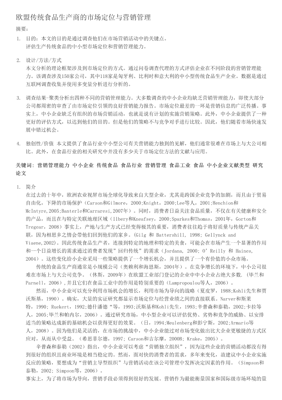 欧盟传统食品生产商的市场定位与营销管理外文翻译资料 2023-03-03 17:26:56 英语原文共 20 页,剩余内容已隐藏,支付完成后下载完整资料 英语原文共 4 页,剩余内容已隐藏,支付完成后下载完整资料 资料编号:[146472],资料为PDF文档或Word文档,PDF文档可免费转换为Word 您需要先支付 30元 才能查看全部内容!立即支付 发小红书推广免费获取该资料资格。点击链接进入获取推广文案即可: Ai一键组稿 | 降AI率 | 降重复率 | 论文一键排版 PREVIOUS NEXT 您可能感兴趣的文章 社群电商平台的客户管理体系研究文献综述 腾讯游戏的发展战略分析文献综述 南通“开沙岛”度假村的商业模式研究开题报告 管理类专业学生接受国际教育影响因素的实证研究文献综述 居住环境与通勤时间对员工离职倾向的影响研究文献综述 了解互联网短视频分享的特点:基于对YouTube的测量研究外文翻译资料 连锁经营视角下餐饮行业的营销策略分析外文翻译资料 出租车行业的颠覆性变革:以UBER为例外文翻译资料 可口可乐公司财务分析外文翻译资料 是什么让财富增长?财富敏感财务报表分析外文翻译资料