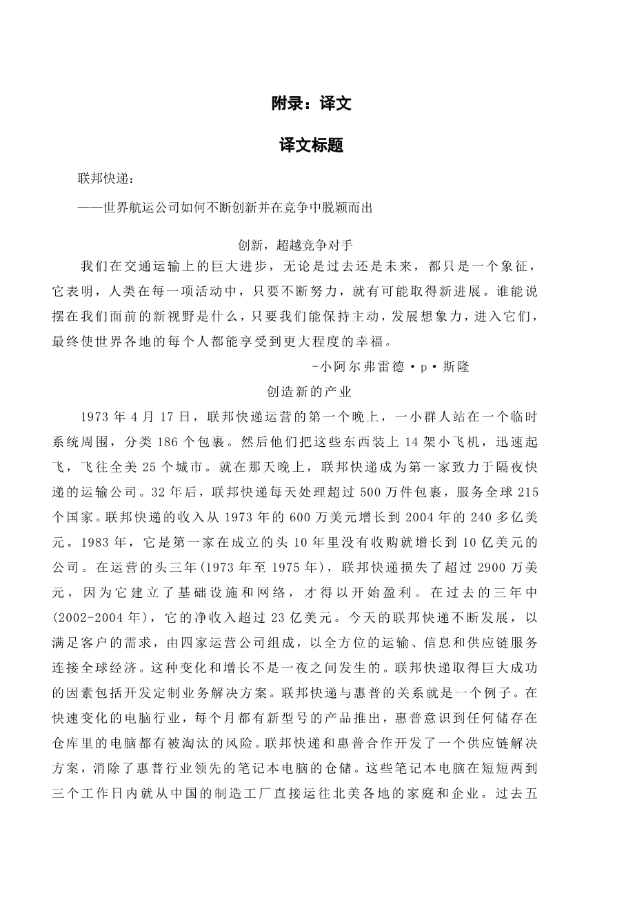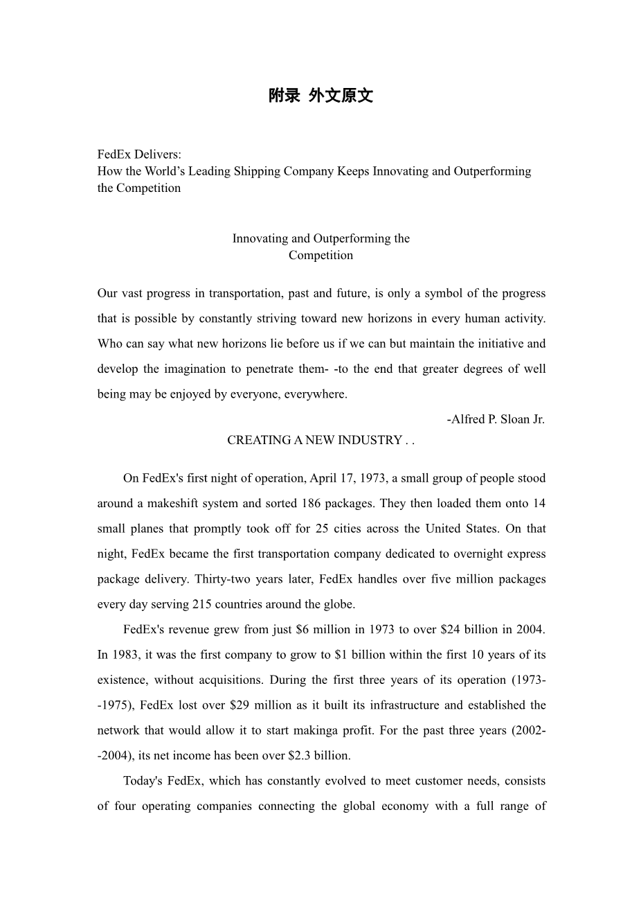 联邦快递:——世界航运公司如何不断创新并在竞争中脱颖而出外文翻译资料