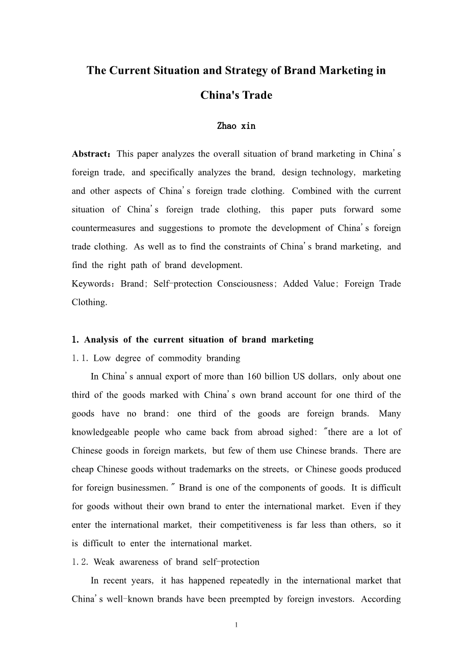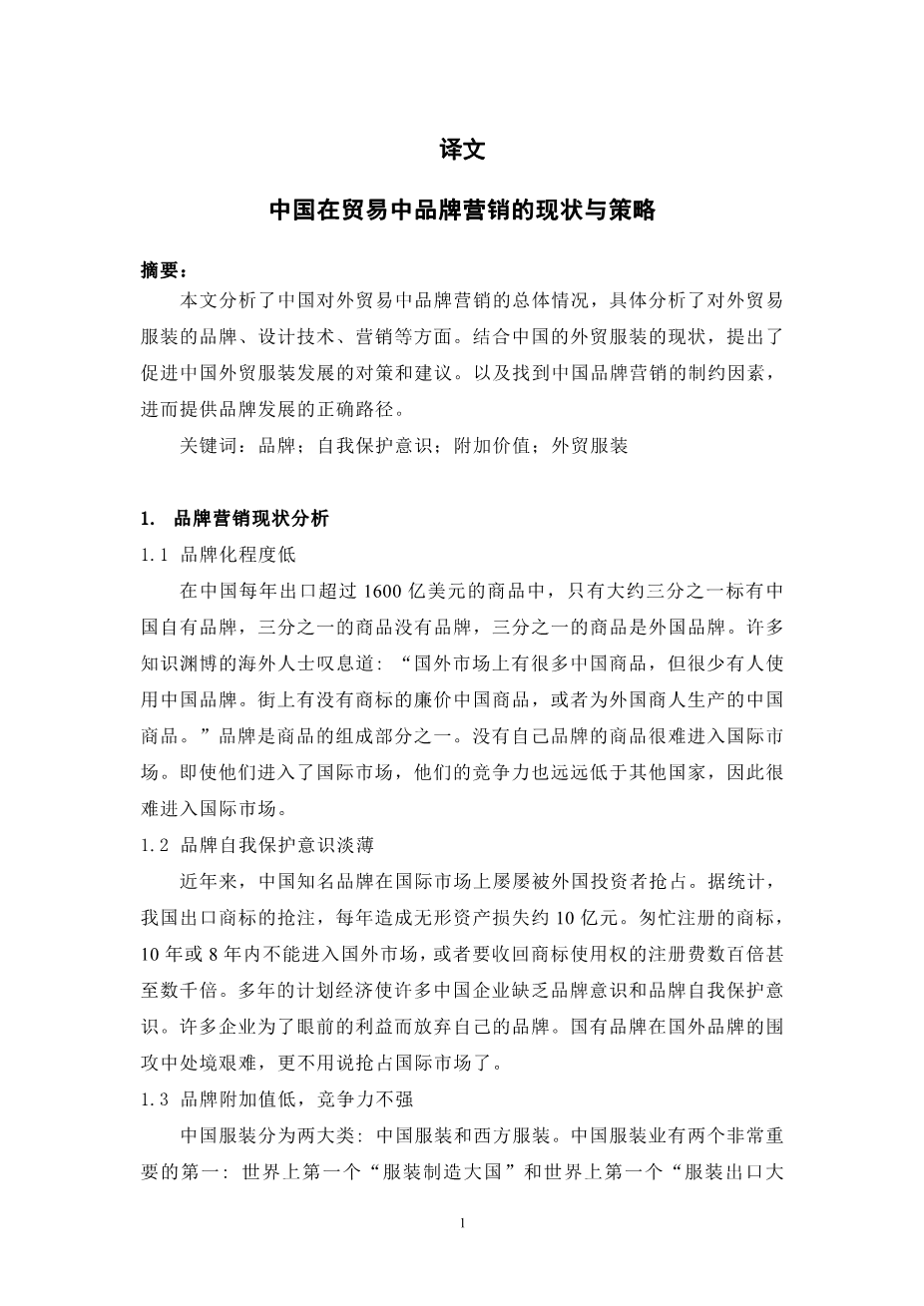 中国在贸易中品牌营销的现状与策略外文翻译资料