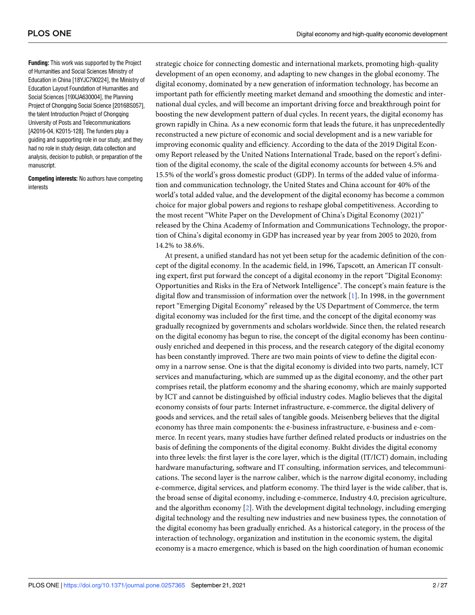 - H1:数字经济的发展有利于全要素生产率的提高,直接促进经济高质量发展。与数字经济发展水平较差的地区相比,基础较好的地区可以从数字经济发展中受益。