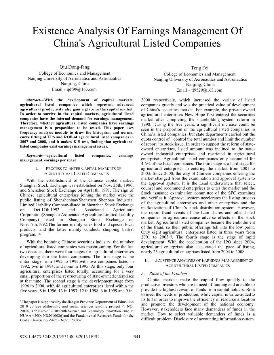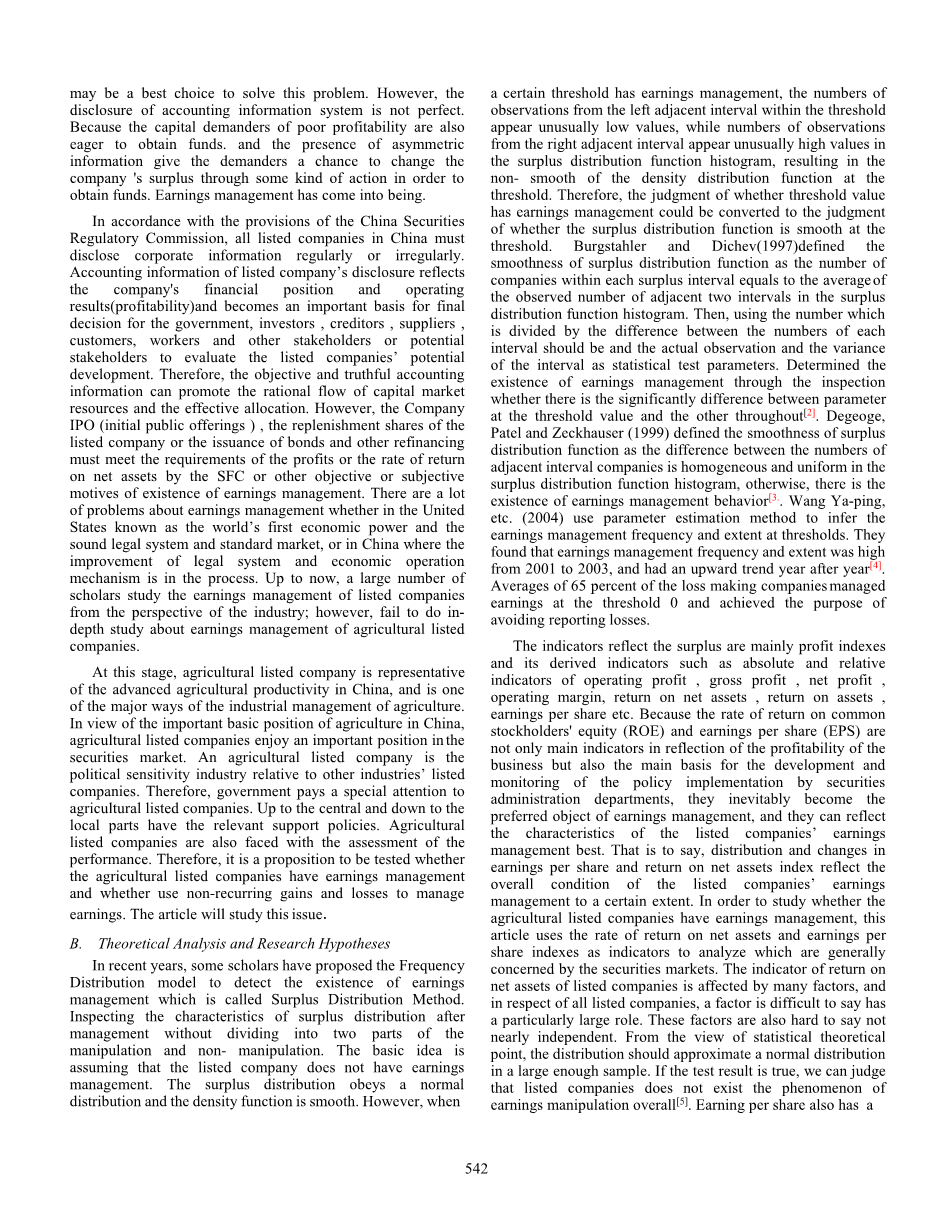 我国农业上市公司盈余管理存在性分析外文翻译资料