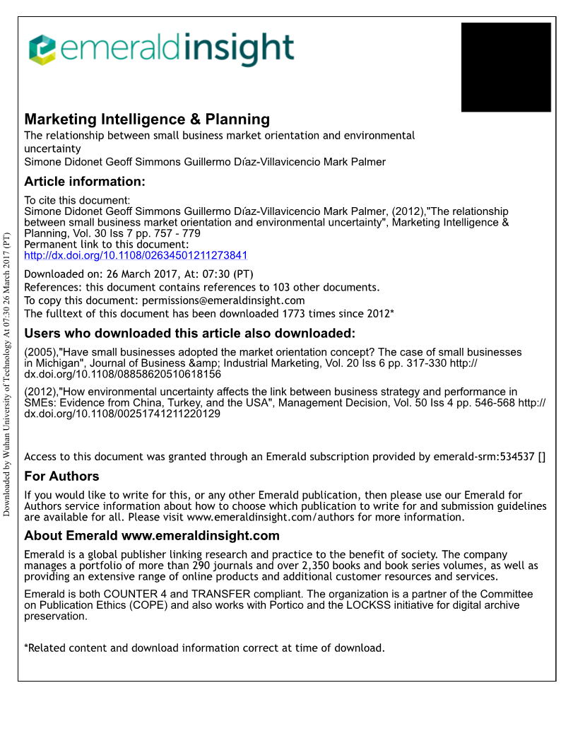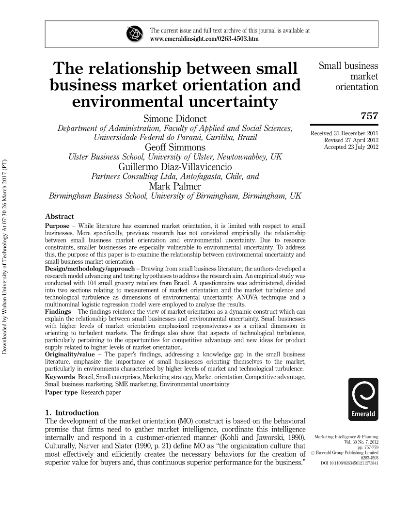 关键词:巴西、小企业、营销策略、市场导向、竞争优势、小企业营销、中小企业营销、环境不确定性