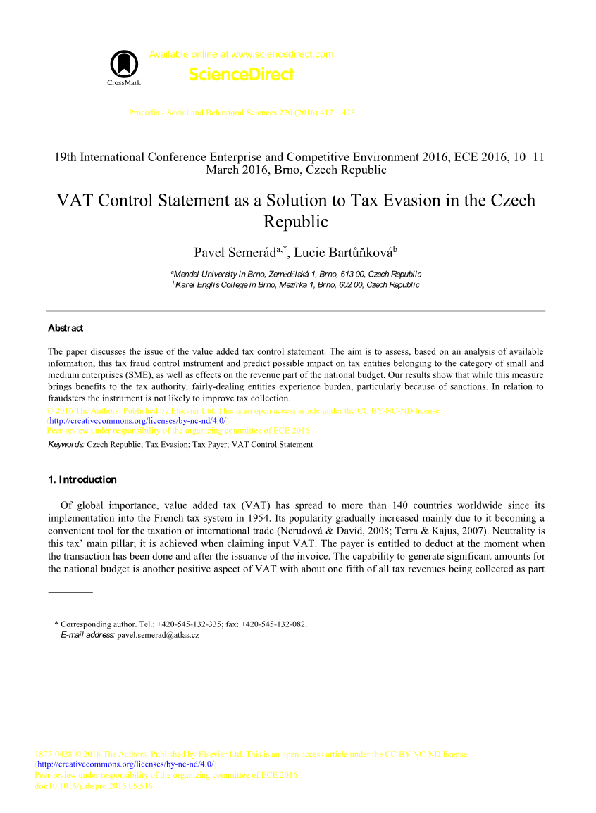 摘要:本文讨论了增值税控制声明的问题。 目的是根据对现有信息的分析,对该税务欺诈控制手段进行评估,并预测对属于中小企业类别的税务实体的可能影响,以及对国家收入部分的影响 预算。 我们的研究结果表明,虽然这一措施为税务机关带来了好处,但相当实际的实体则特别是因为制裁而受到负担。 对于欺诈者而言,该手段不太可能改善征税。