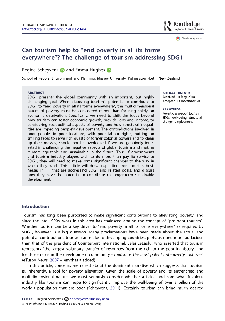 扶贫旅游能帮助“消除所有形式的贫困”吗?旅游业对于解决SDG1的挑战