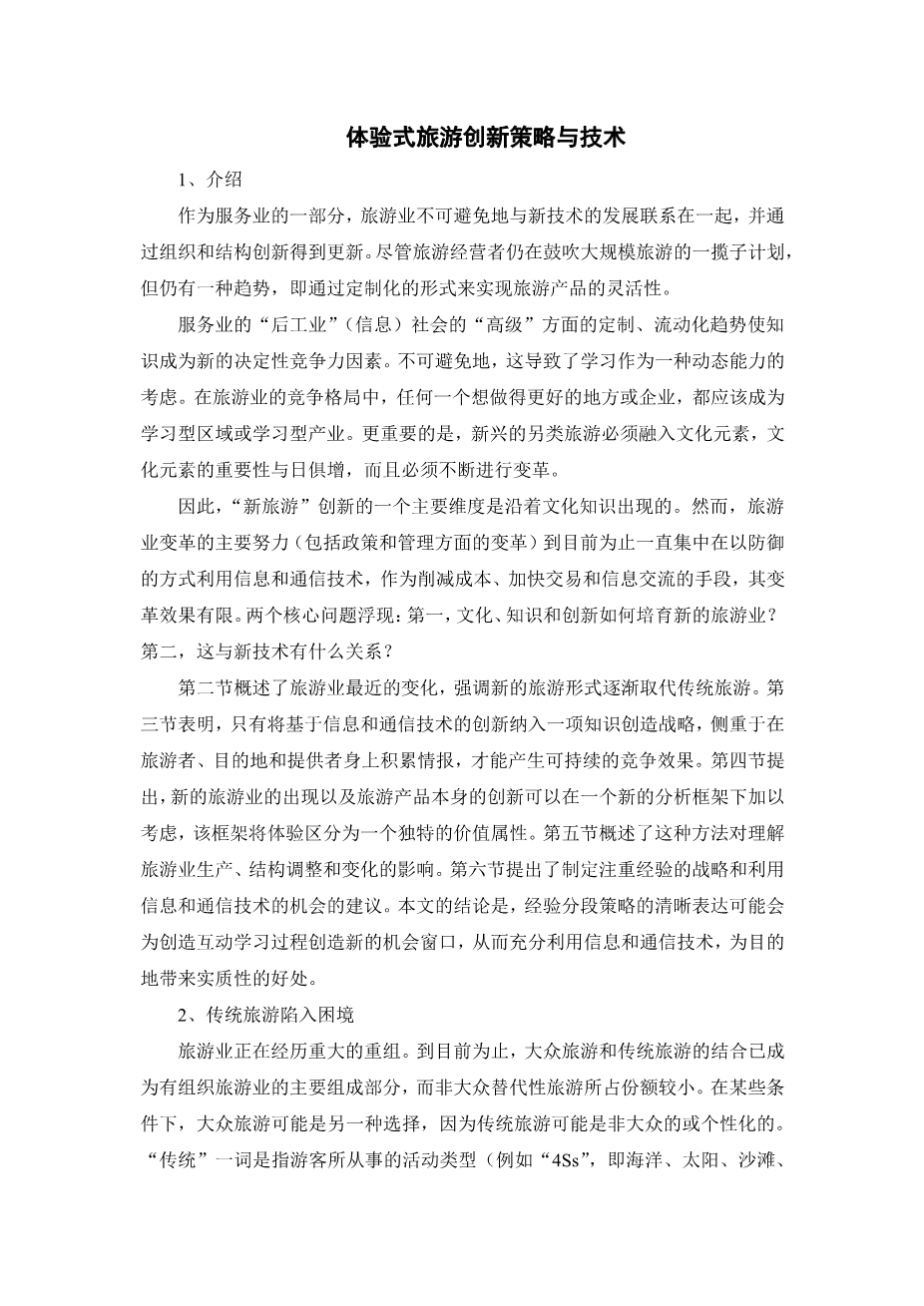 体验式旅游创新策略与技术外文翻译资料 2023-02-10 09:34:30 英语原文共 9 页,剩余内容已隐藏,支付完成后下载完整资料 英语译文共 9 页,剩余内容已隐藏,支付完成后下载完整资料 资料编号:[413921],资料为PDF文档或Word文档,PDF文档可免费转换为Word 您需要先支付 30元 才能查看全部内容!立即支付 发小红书推广免费获取该资料资格。点击链接进入获取推广文案即可: Ai一键组稿 | 降AI率 | 降重复率 | 论文一键排版 PREVIOUS NEXT 您可能感兴趣的文章 可持续农村旅游战略:发展和保护的工具外文翻译资料 电影诱导旅游:衡量的挑战和其他问题外文翻译资料 VR旅游能提升用户体验吗?外文翻译资料 基于网络文本分析的野生动物旅游体验外文翻译资料 网红旅游目的地旅游感知研究外文翻译资料 文化与旅游融合背景下“互联网 旅游”服务创新模式研究外文翻译资料 城市地铁旅游面临的环境和社会挑战建筑业:中国的一项实证研究外文翻译资料 基于地域计算的旅游文化创意产品设计研究——以四川成都文化为例外文翻译资料 文化节对当地居民参与的社会经济影响研究:卡●塔索文化旅游与艺术节.外文翻译资料 通过生态旅游开发实现三湾湿地资源的可持续利用外文翻译资料