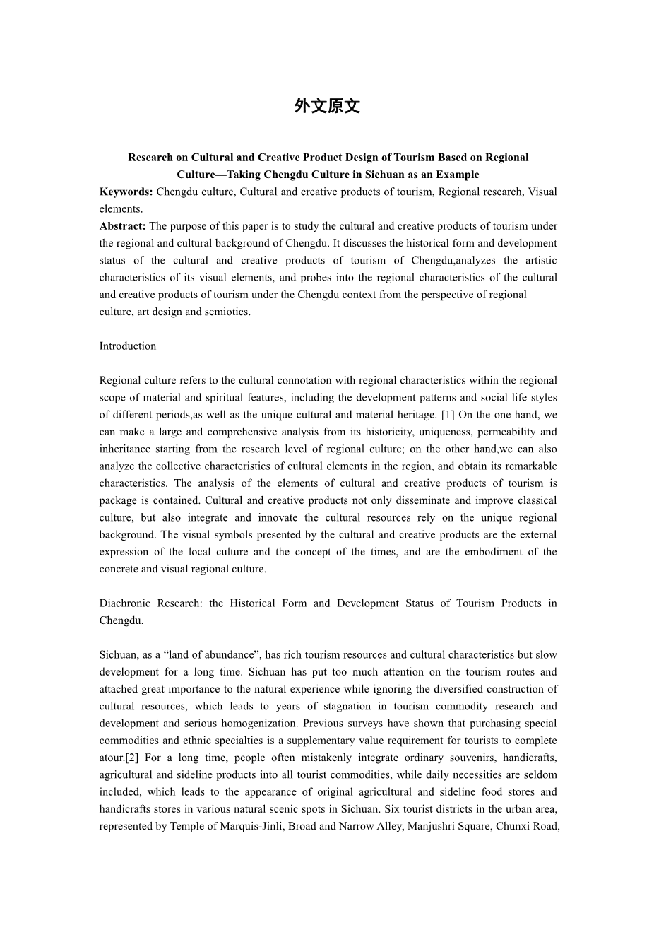 基于地域计算的旅游文化创意产品设计研究——以四川成都文化为例外文翻译资料