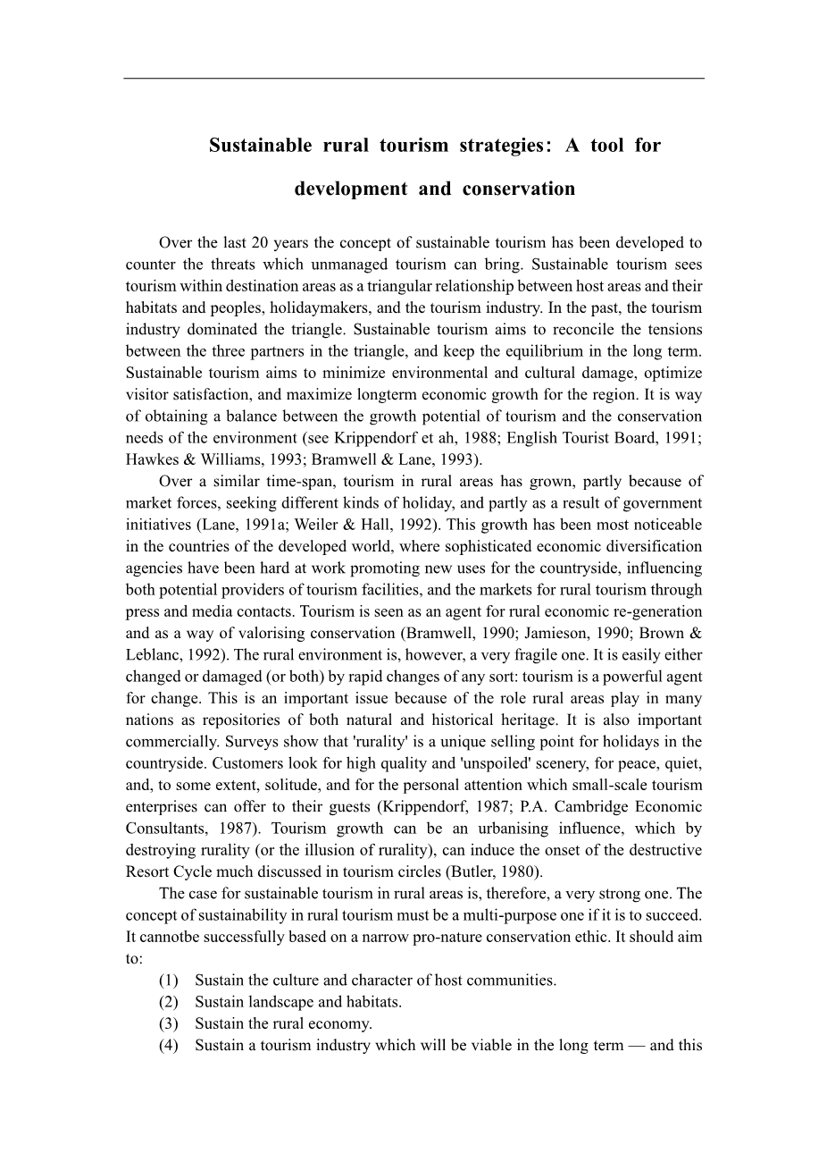 可持续农村旅游战略:发展和保护的工具外文翻译资料 2023-04-18 11:53:27 英语原文共 7 页,剩余内容已隐藏,支付完成后下载完整资料 英语译文共 7 页,剩余内容已隐藏,支付完成后下载完整资料 资料编号:[588800],资料为PDF文档或Word文档,PDF文档可免费转换为Word 您需要先支付 30元 才能查看全部内容!立即支付 发小红书推广免费获取该资料资格。点击链接进入获取推广文案即可: Ai一键组稿 | 降AI率 | 降重复率 | 论文一键排版 PREVIOUS NEXT 您可能感兴趣的文章 可持续农村旅游战略:发展和保护的工具外文翻译资料 电影诱导旅游:衡量的挑战和其他问题外文翻译资料 VR旅游能提升用户体验吗?外文翻译资料 基于网络文本分析的野生动物旅游体验外文翻译资料 网红旅游目的地旅游感知研究外文翻译资料 文化与旅游融合背景下“互联网 旅游”服务创新模式研究外文翻译资料 城市地铁旅游面临的环境和社会挑战建筑业:中国的一项实证研究外文翻译资料 基于地域计算的旅游文化创意产品设计研究——以四川成都文化为例外文翻译资料 文化节对当地居民参与的社会经济影响研究:卡●塔索文化旅游与艺术节.外文翻译资料 通过生态旅游开发实现三湾湿地资源的可持续利用外文翻译资料