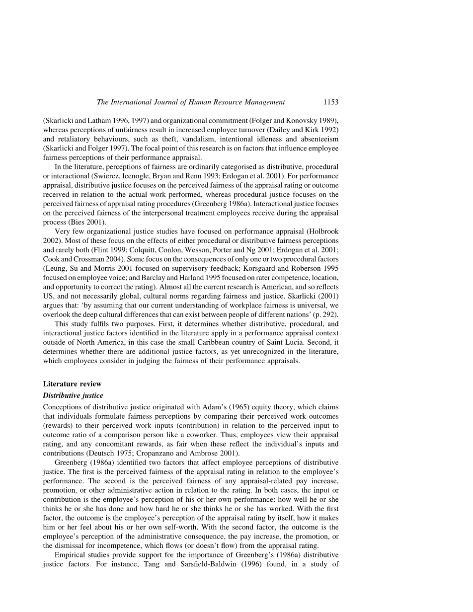 这项研究实现了两个目标,第一,它确定了文献中确定的分配、程序、互动公平的因素是否适用于北美以外的绩效评估环境,在这个案例中是一个加勒比海小国圣卢西亚。第二,它确定了是否有额外的在文献中还未被发现的公平因素,使雇员们在评价他们绩效评估公平性时能考虑到。