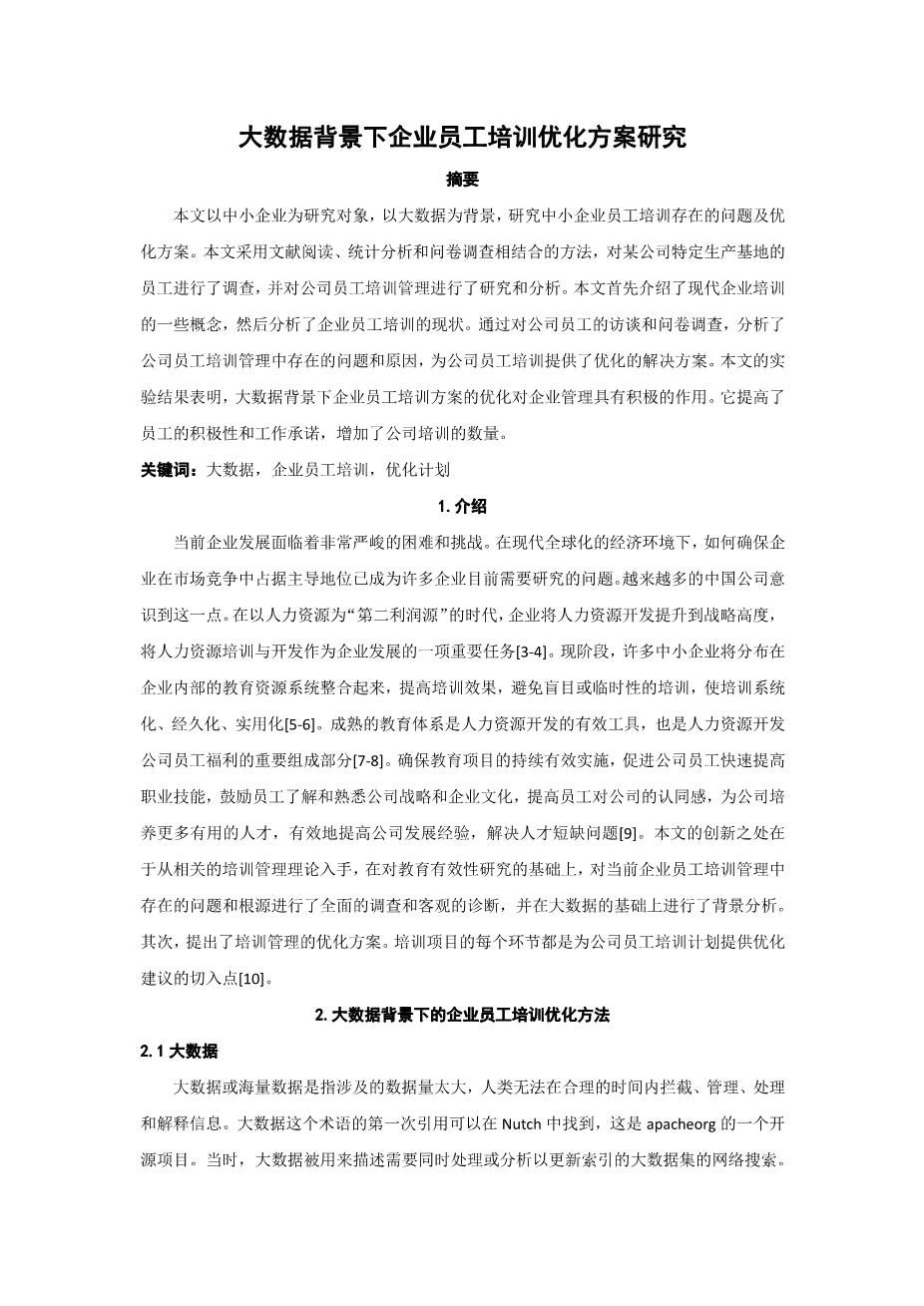 大数据背景下企业员工培训优化方案研究外文翻译资料 2023-06-30 07:31:33 英语原文共 8 页,剩余内容已隐藏,支付完成后下载完整资料 英语译文共 6 页,剩余内容已隐藏,支付完成后下载完整资料 资料编号:[602988],资料为PDF文档或Word文档,PDF文档可免费转换为Word 您需要先支付 30元 才能查看全部内容!立即支付 发小红书推广免费获取该资料资格。点击链接进入获取推广文案即可: Ai一键组稿 | 降AI率 | 降重复率 | 论文一键排版 PREVIOUS NEXT 您可能感兴趣的文章 员工帮助计划与组织承诺的关系研究–以我国某互联网企业为例开题报告 制造业服务化背景下工程技术人才胜任力模型研究开题报告 手机招聘软件差异化竞争优势策略选择及改进研究——以南京本科应届生使用“boss直聘”软件情况为例开题报告 全球供应链,制度约束和企业水平适应:中国服务外包企业比较研究外文翻译资料 海外投资对核心竞争力的影响:企业文化视角外文翻译资料 共享经济中工人和平台的地位外文翻译资料 工作场所失礼与工作满意度:情绪管理的中介作用外文翻译资料 回到工作岗位对退休后的工作期望和实现外文翻译资料 企业社会责任的战略价值:公共关系实践的关系管理框架外文翻译资料 人工智能焦虑外文翻译资料