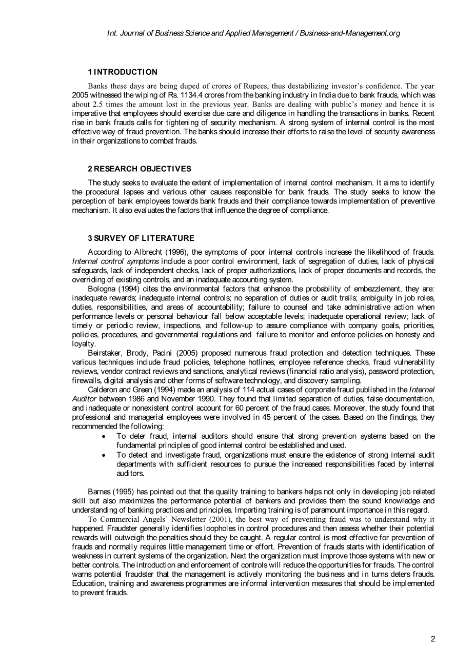本研究旨在评估内部控制机制的实施程度,旨在确定银行欺诈行为的程序失误和其他各种原因。本研究旨在了解银行员工对银行诈骗的认知及其对实施预防机制的遵守情况以及评估影响遵守程度的因素。