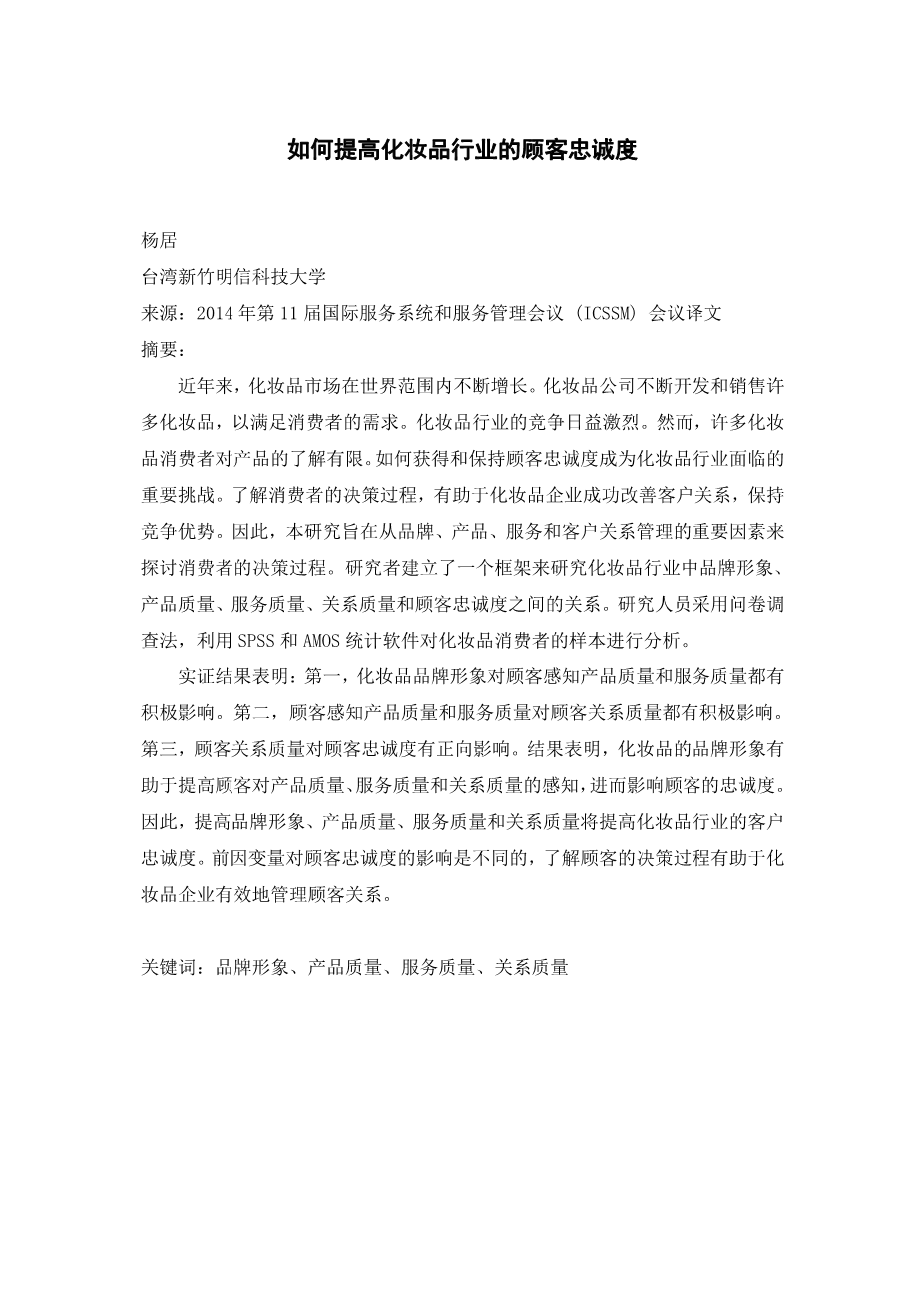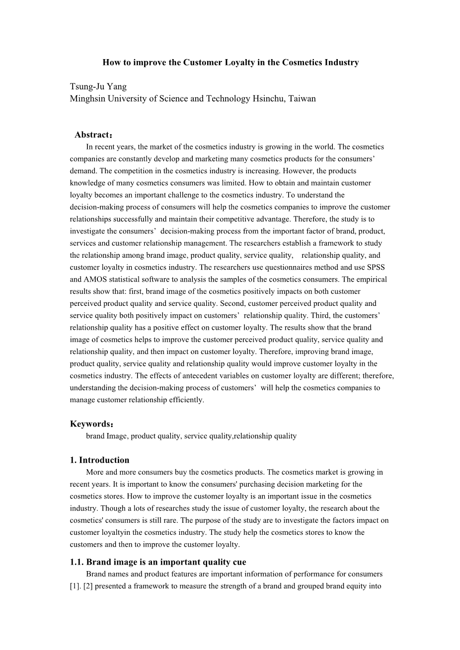 如何提高化妆品行业的顾客忠诚度外文翻译资料