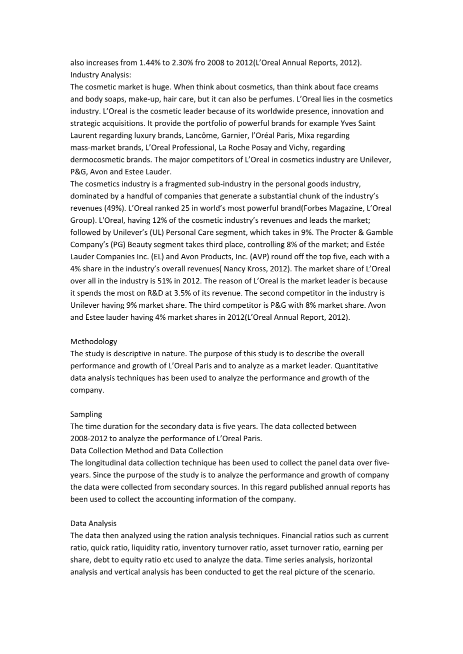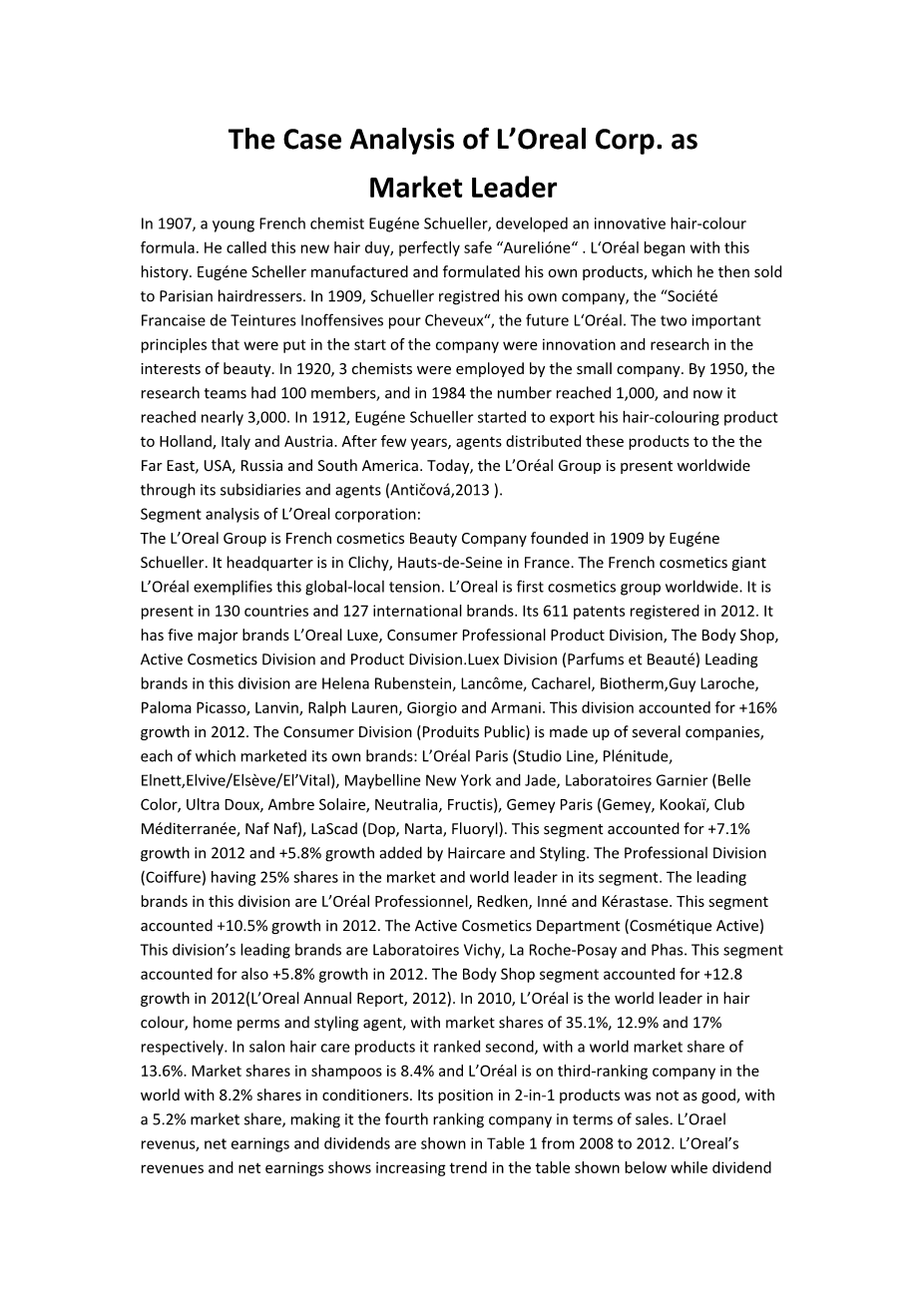 欧莱雅集团担任市场领导者的案例分析外文翻译资料
